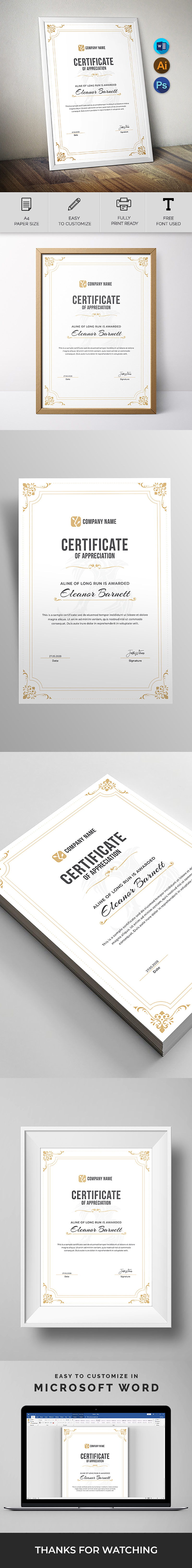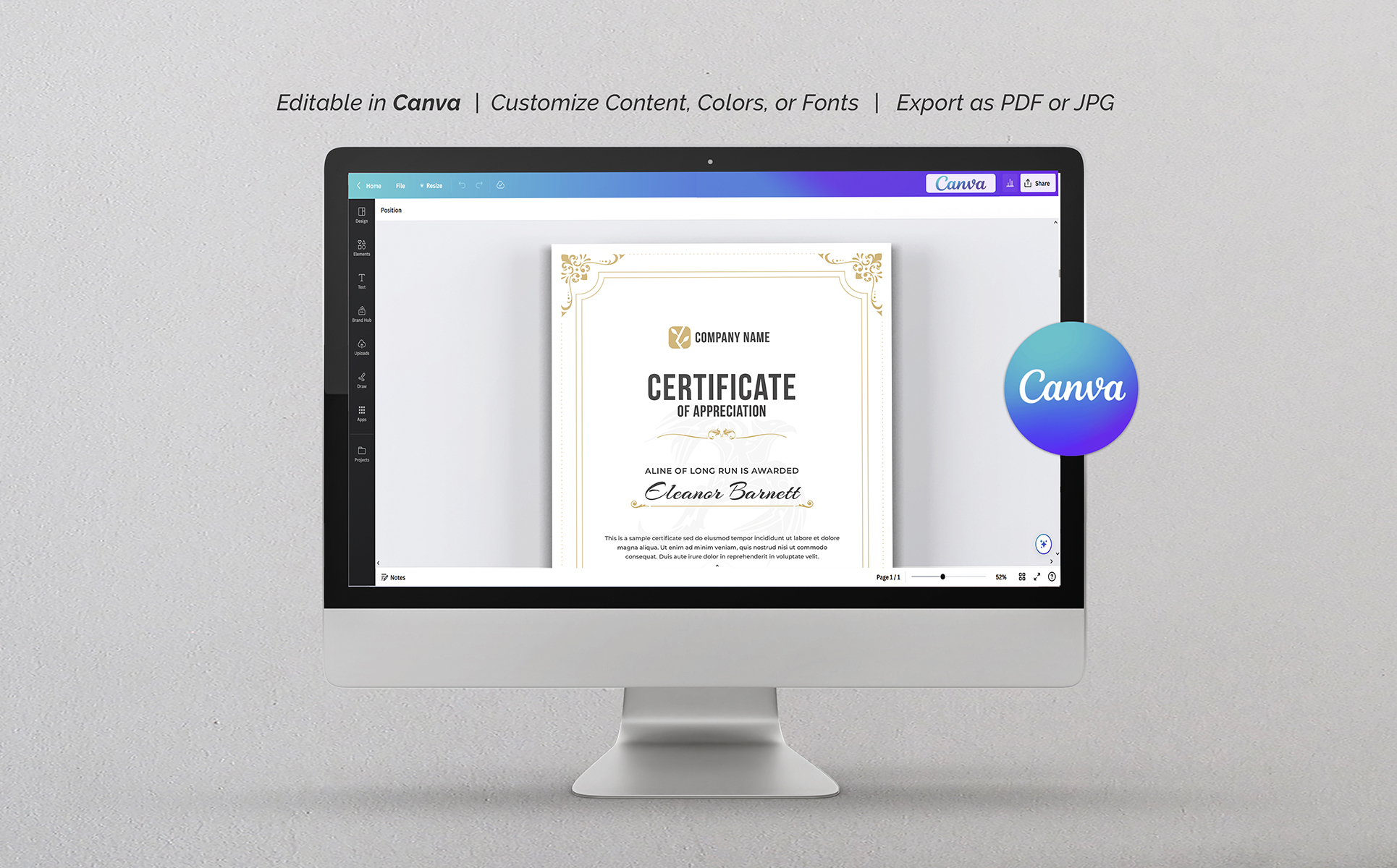 Professional Certificate of Appreciation Template – printable & editable in Canva and Word. Certificate Template