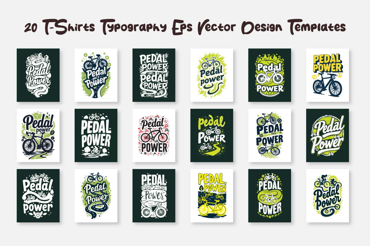 20 Bundle Pedal Power typography t-shirt vector templates Corporate Identity