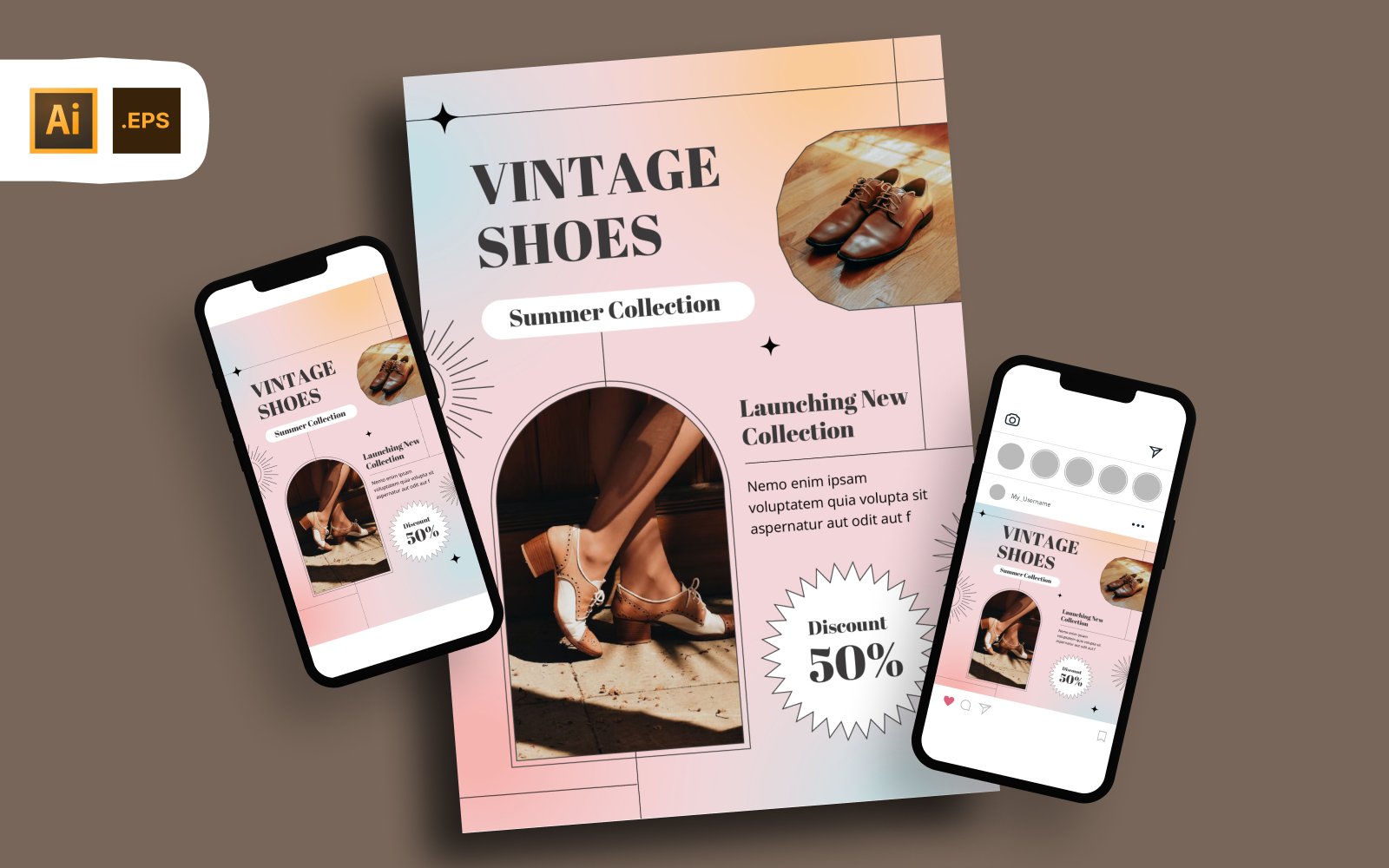 Aesthetic Gradient Shoes Discount Flyer Template Corporate Identity
