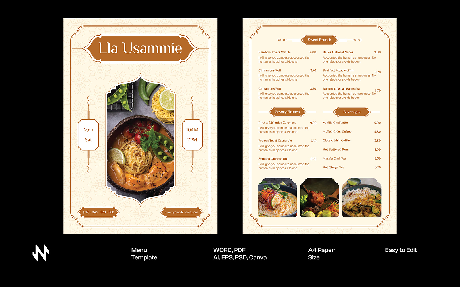 Want to make a restaurant or cafe? It would be best to consider using these menu templates to match your restaurant. It's easy to use with only a few clicks and saves your time from designing a menu from scratch. These templates are professionally made based on real-life possibilities, so you can expect them to match your needs.