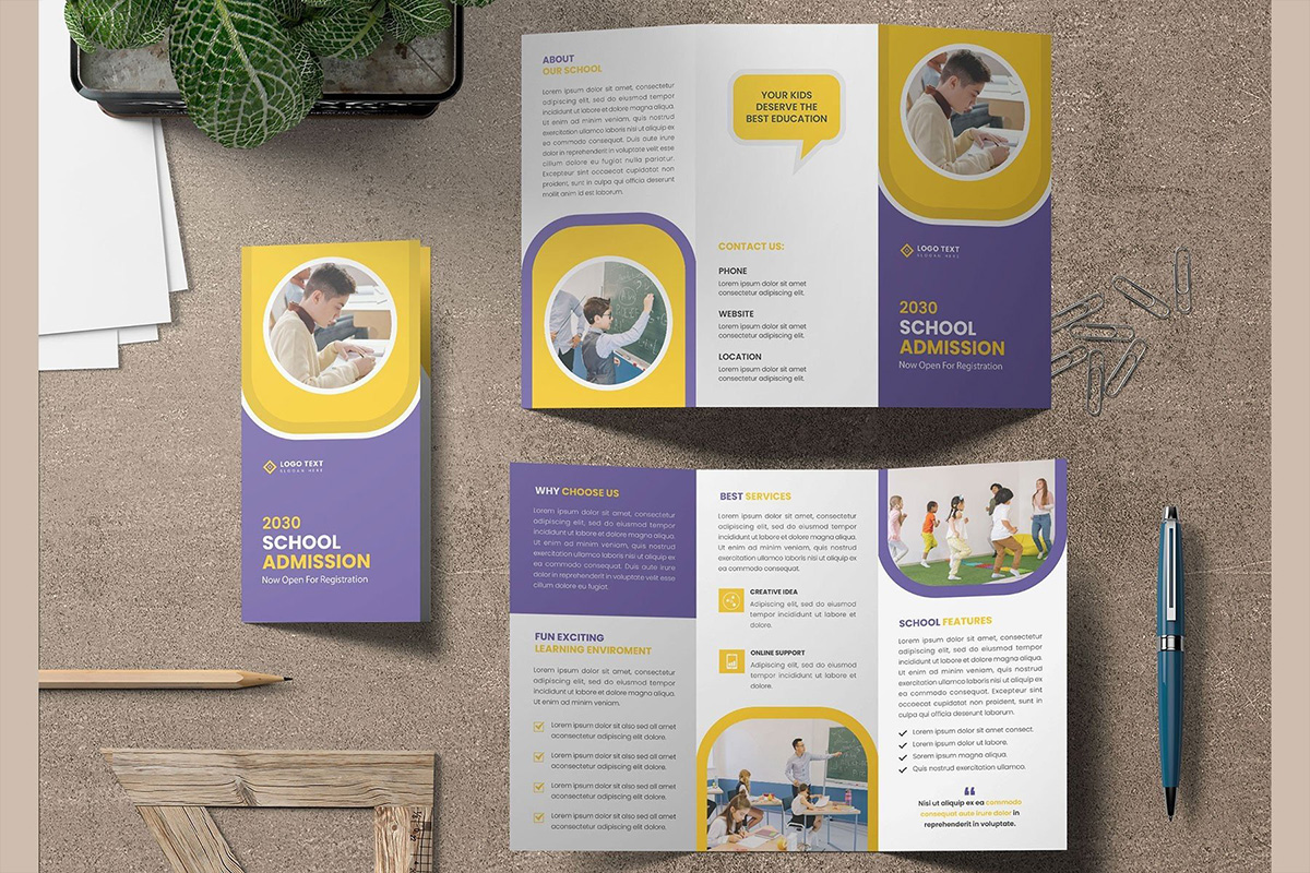 Back to school admission trifold brochure template and kids learning flyer design Corporate Identity