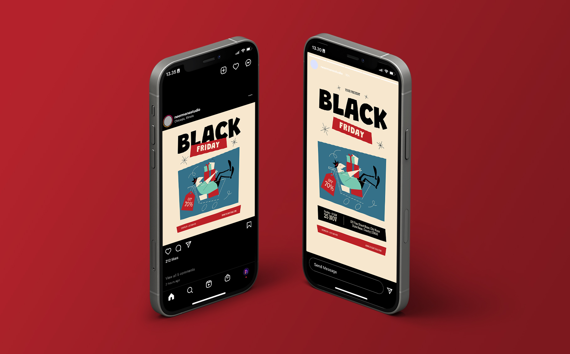 - 1080 x 1080 px (Instagram Post) & 1080 x 1920 px (Instagram Story)