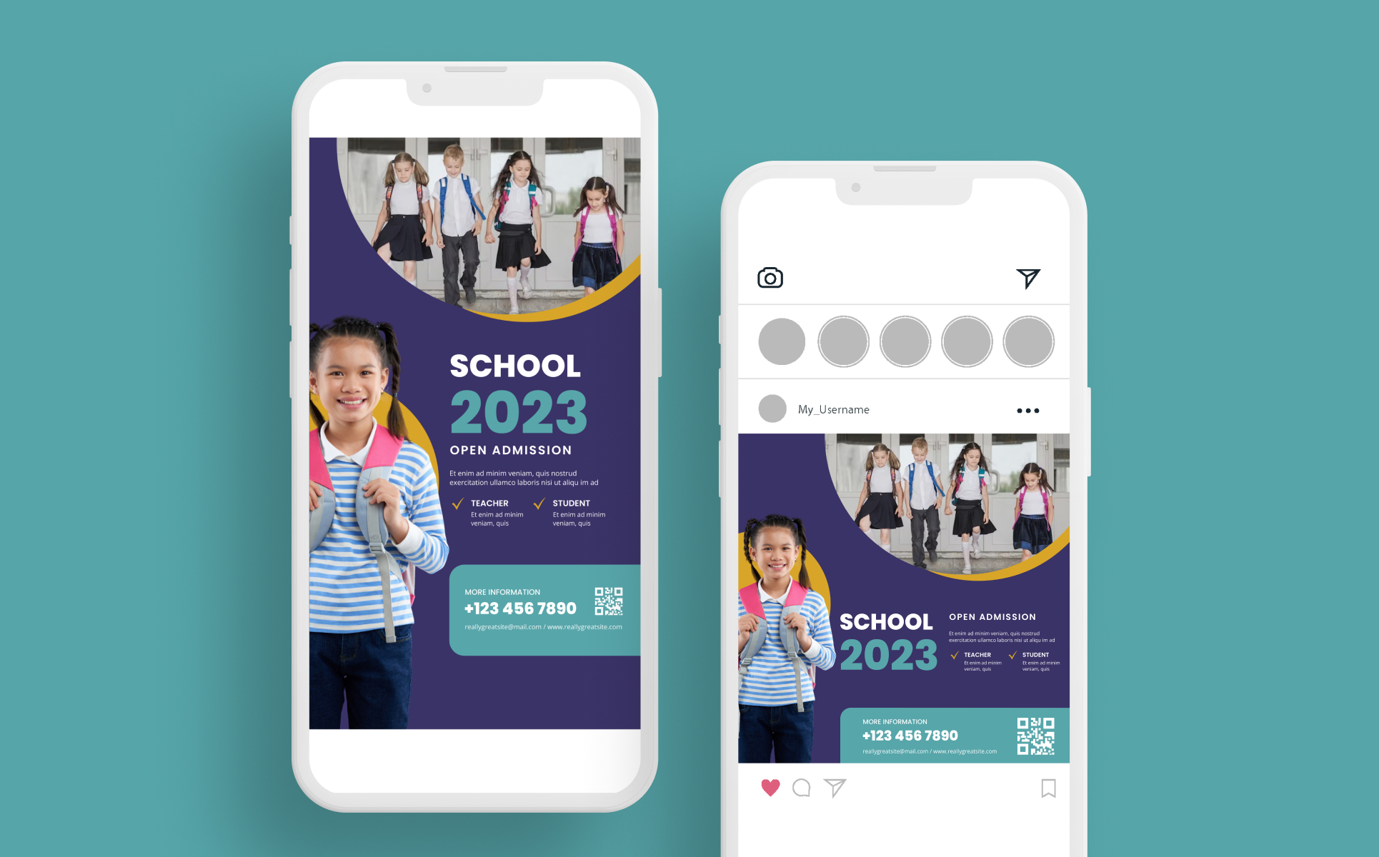 Blue Modern School Admission - Single-Sided Flyer Template was designed to promote an elementary school / kindergarten / international school or other advertising purposes.