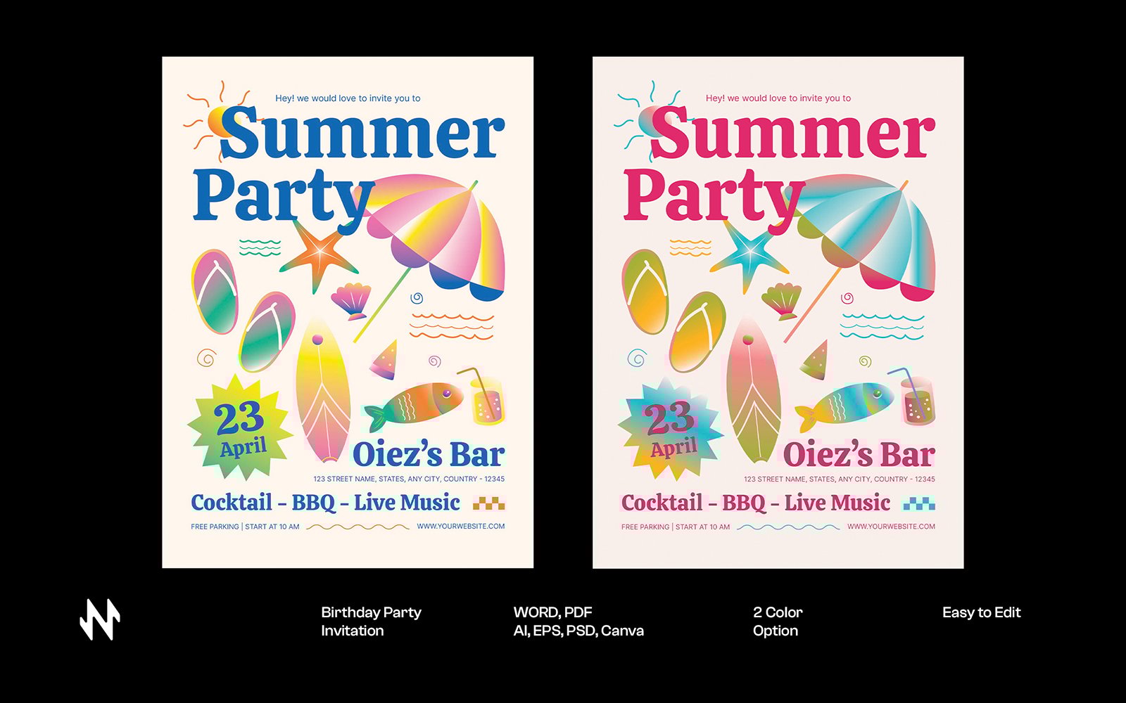 Share your moment with your friends by sending them an invitation to your party or event with this template. This item is a Print-ready Invitation template that comes with 2 different color variations you can choose from. With this template, you can make your invitation with less hassle and save your time. Just edit the text replace the image and you have it!