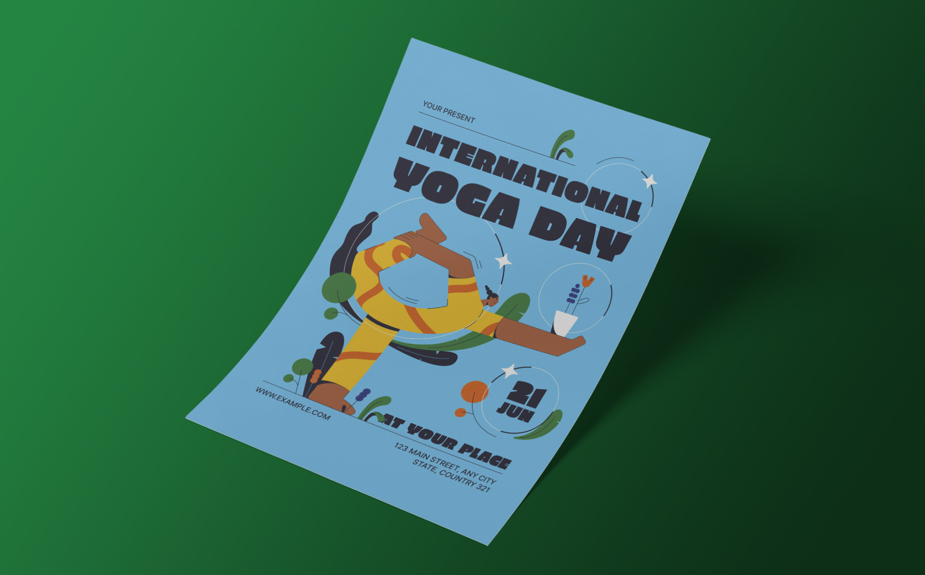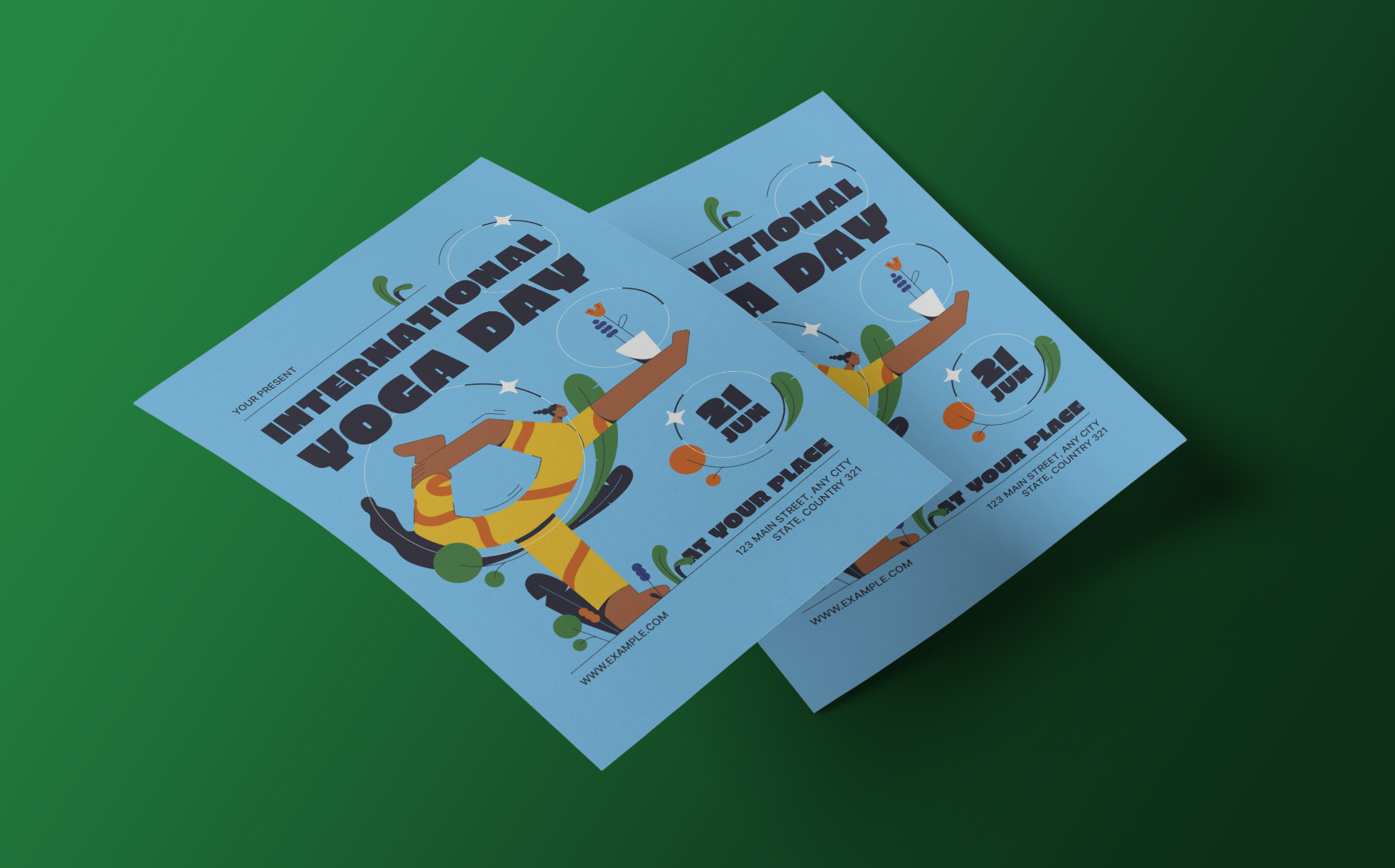 Blue Retro International Yoga Day Flyer Corporate Identity