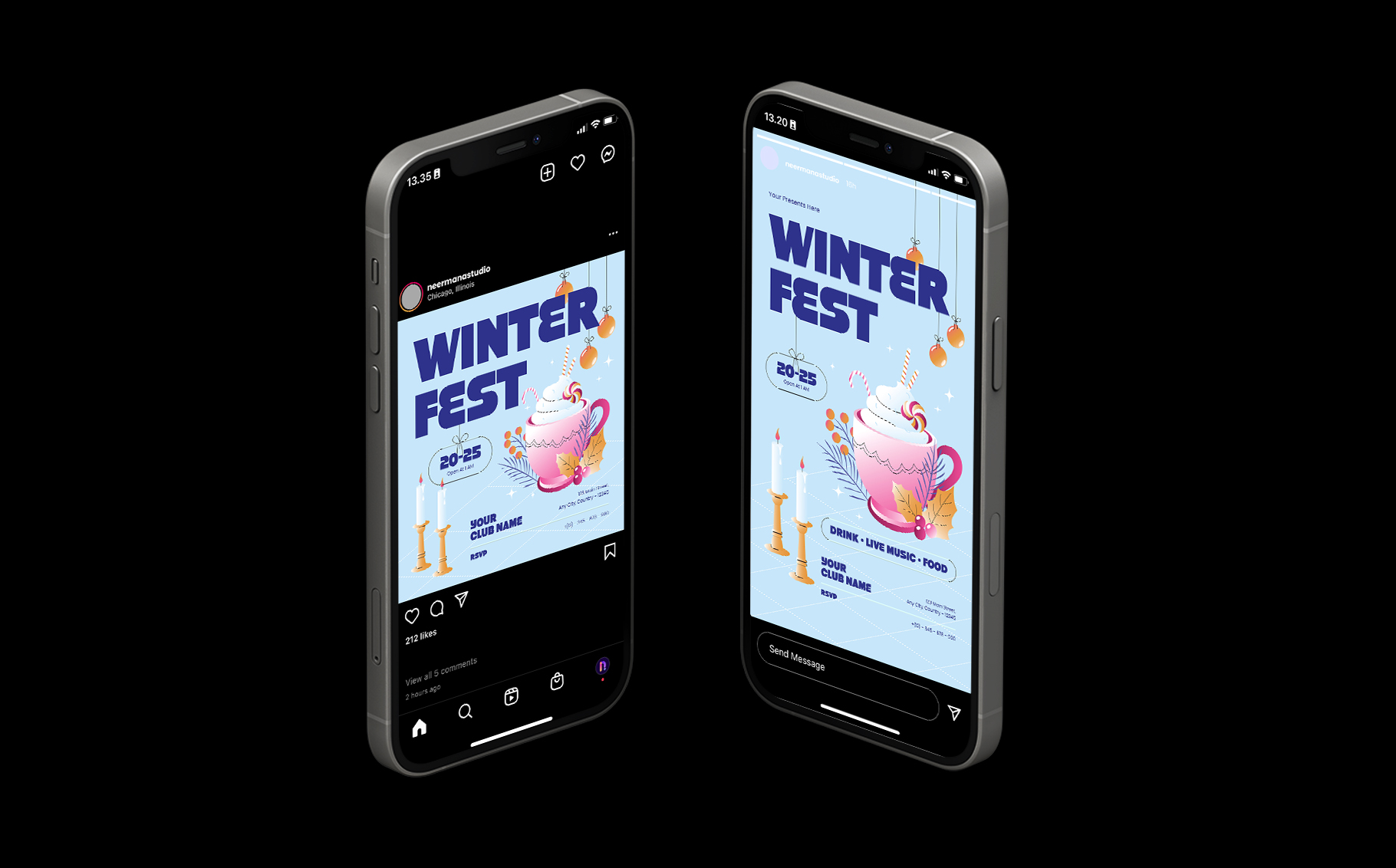 - 1080 x 1080 px (Instagram Post) & 1080 x 1920 px (Instagram Story)