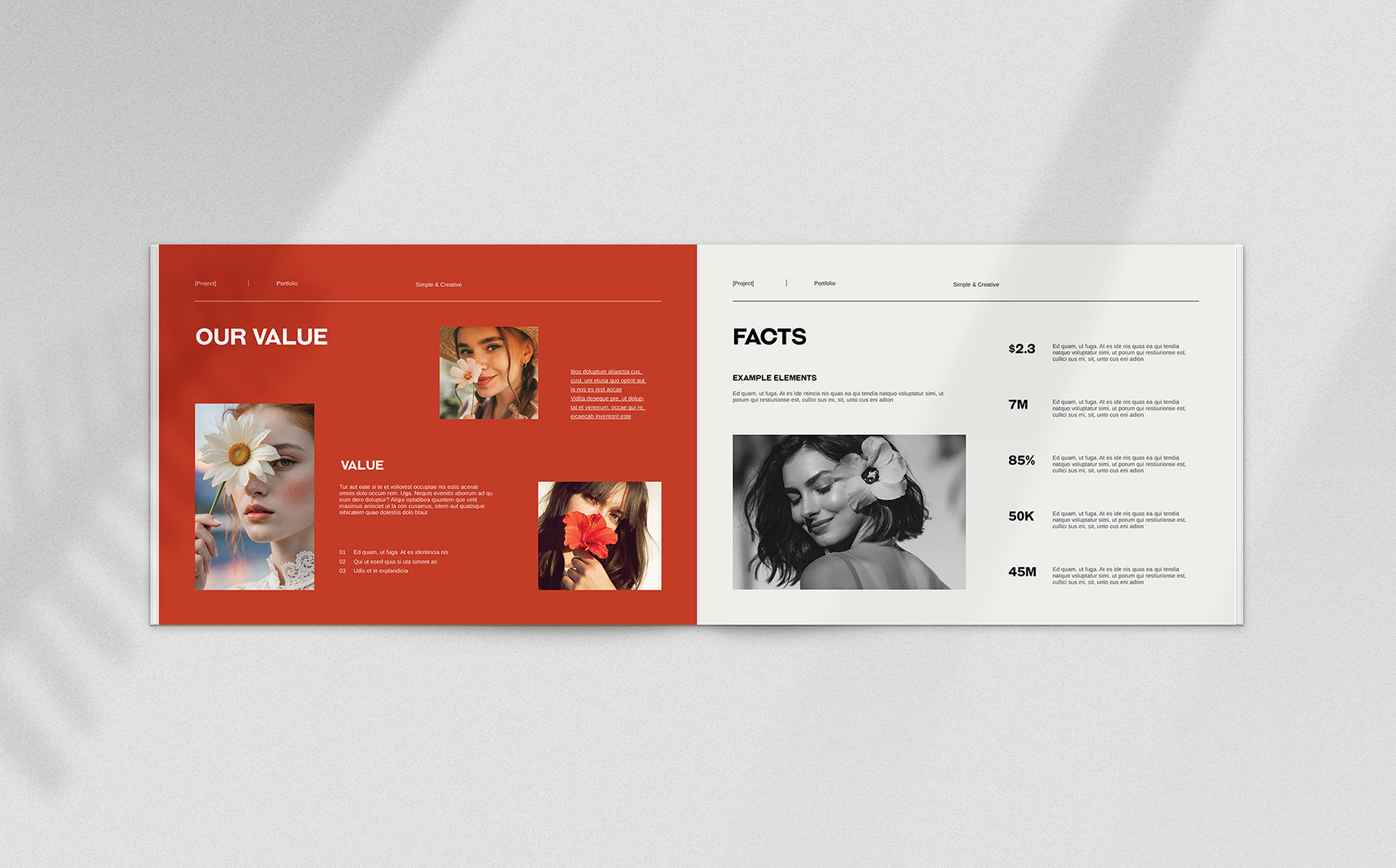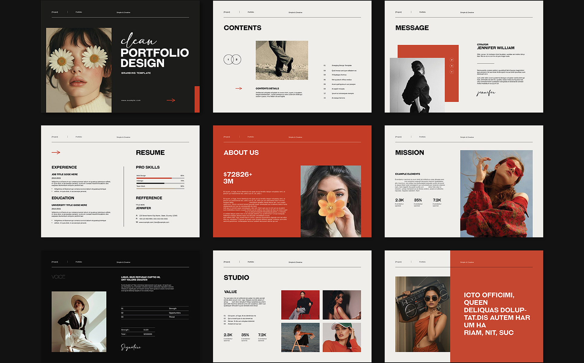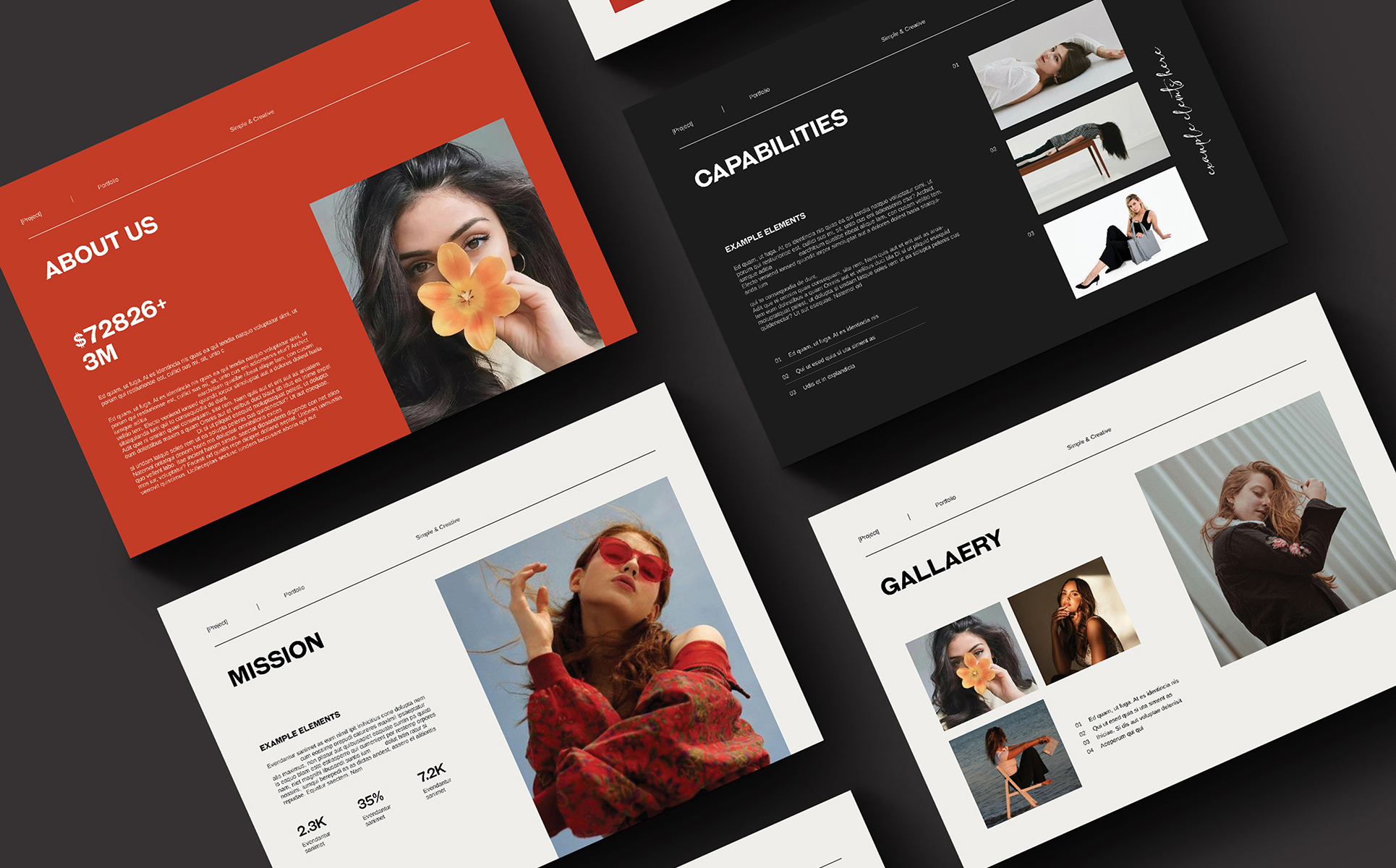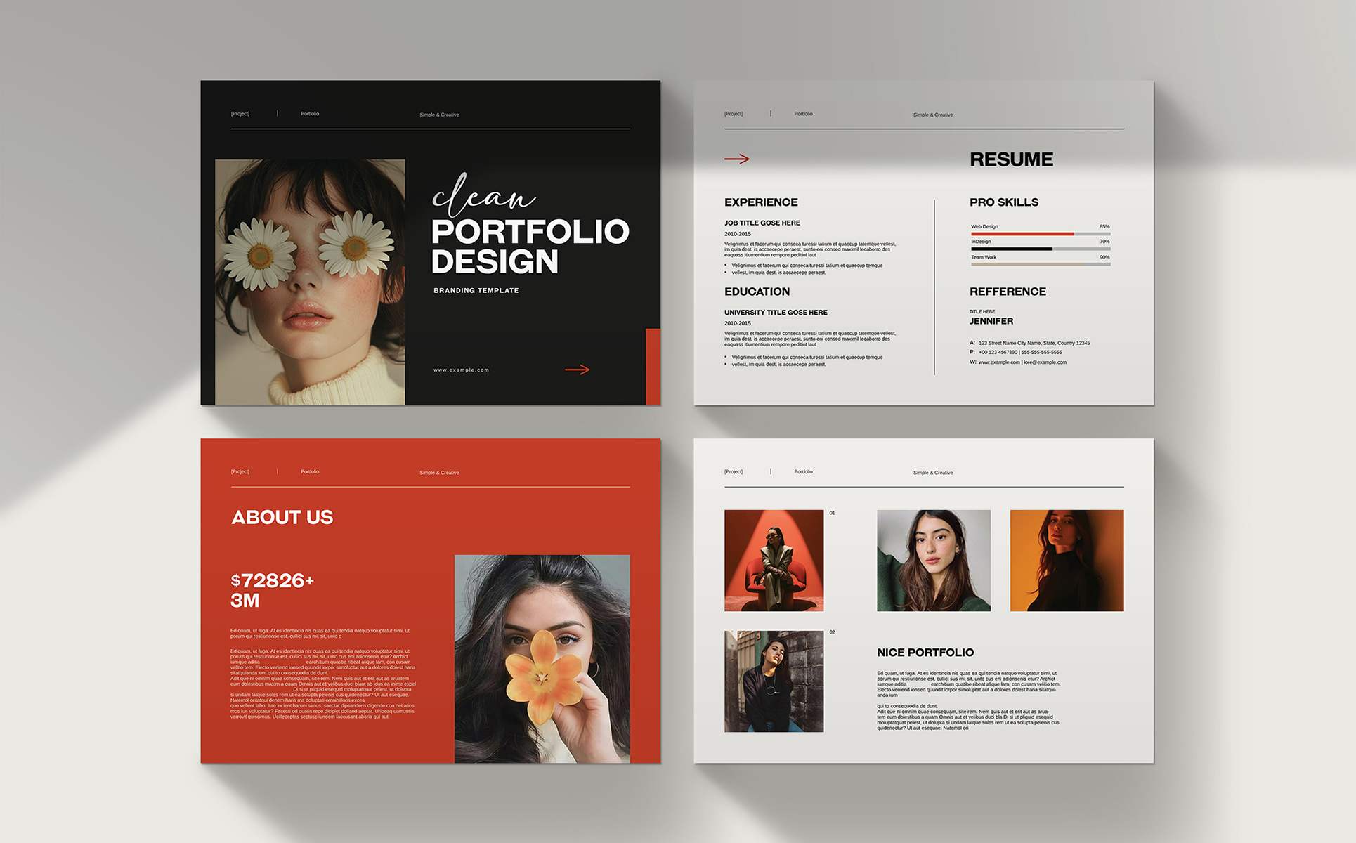 We have designed this template to be as flexible as possible for a variety of clients. Sections include Cover, Welcome, Content, About, Special portfolio, Imagery, Typography, Photo Layout, portfolio & Resume.