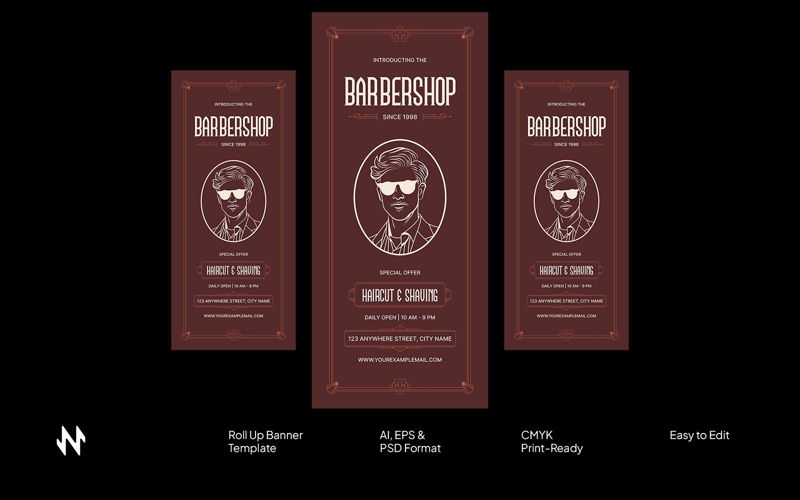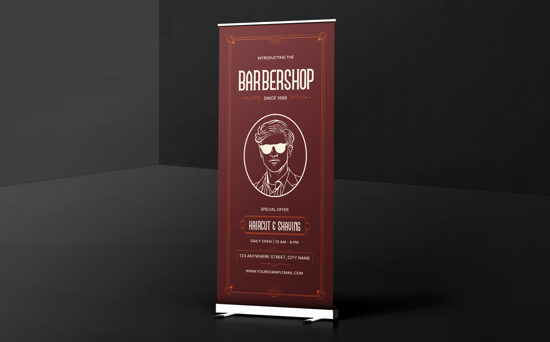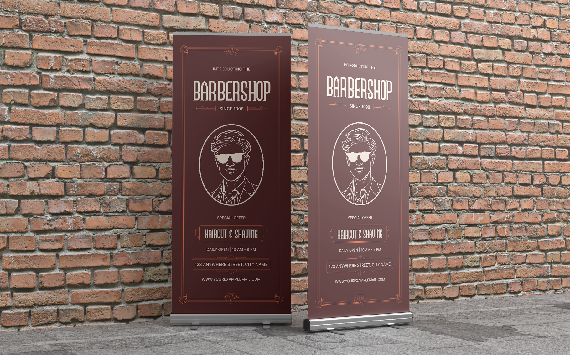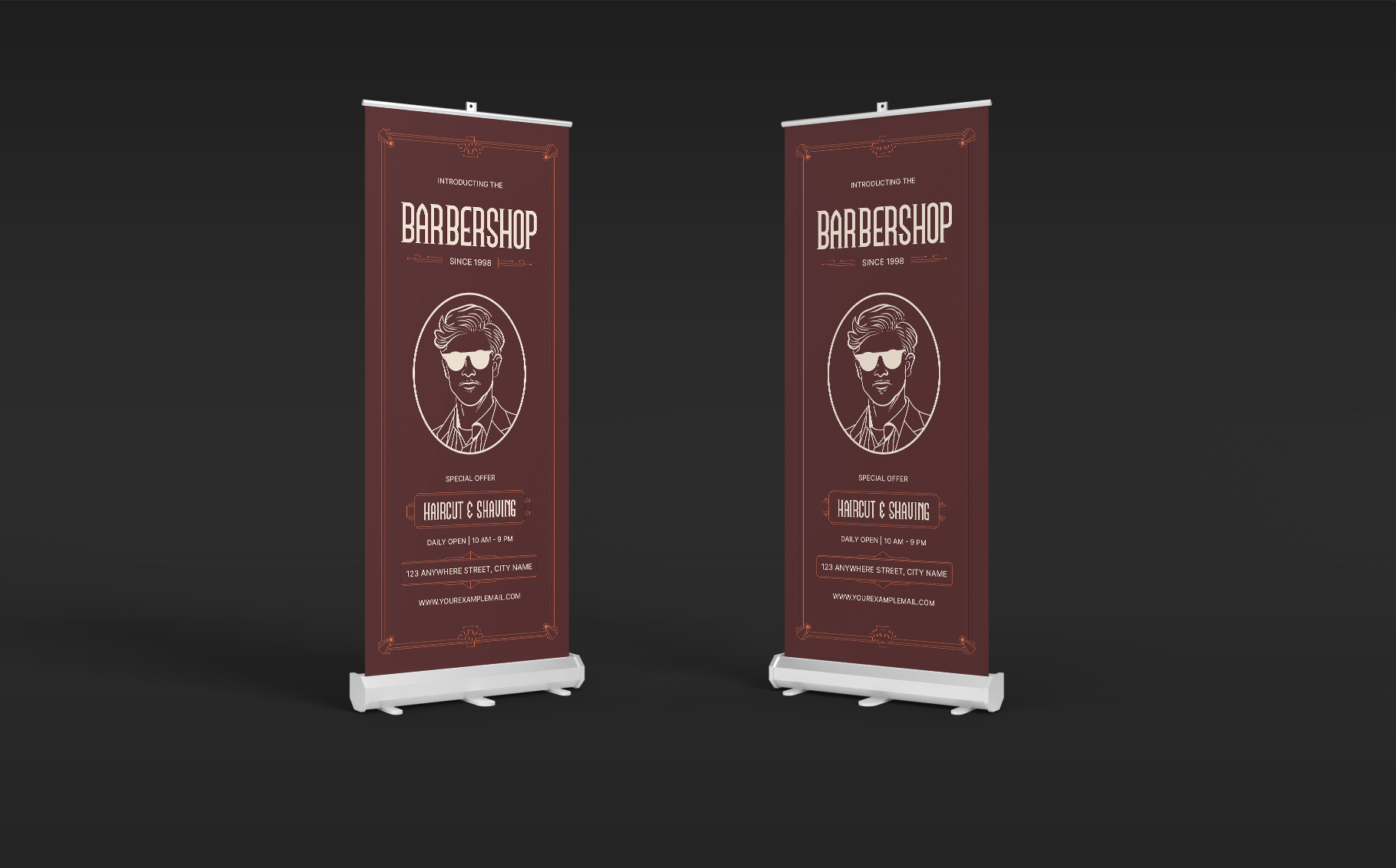 Brown Modern Barbershop Banner is a roll up banner design that ready to use with adjustable size and can printed immediately. This template is great for every business needs. Effective content used, professional but with creative looks.