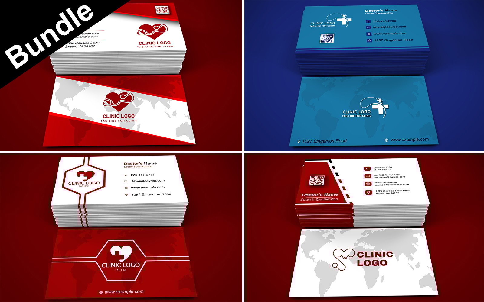Bundle of 4 Business Card Templates For Clinic - Doctor - Hospitals Corporate Identity