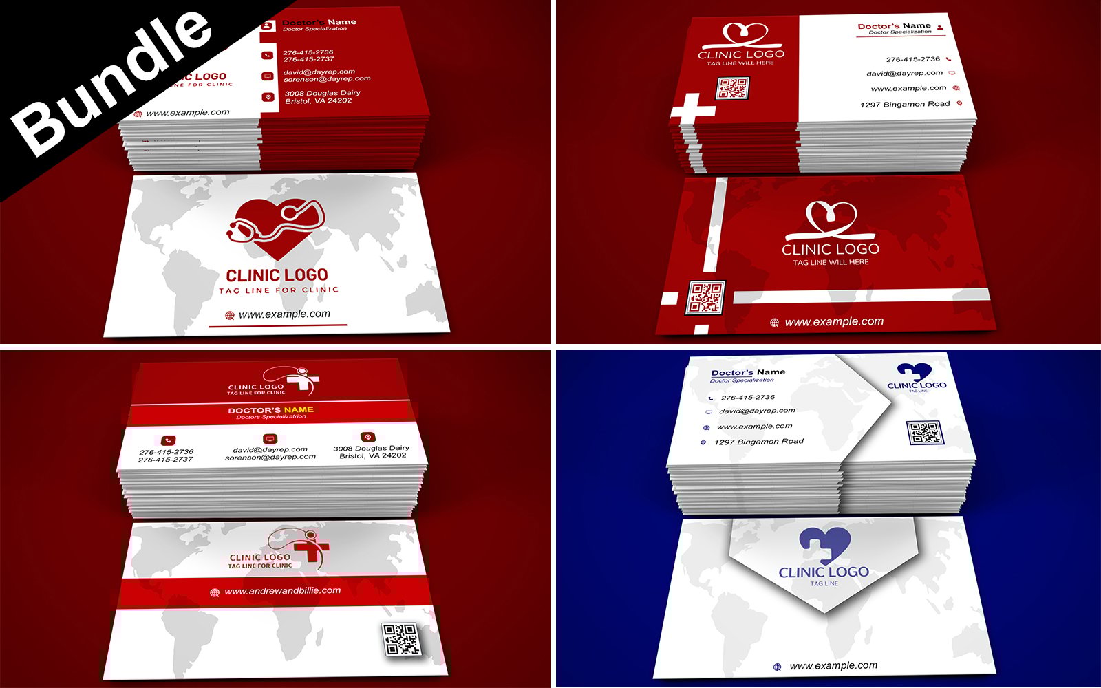 Bundle of 4 Business Card Templates For Doctor - Hospitals - Clinic Corporate Identity