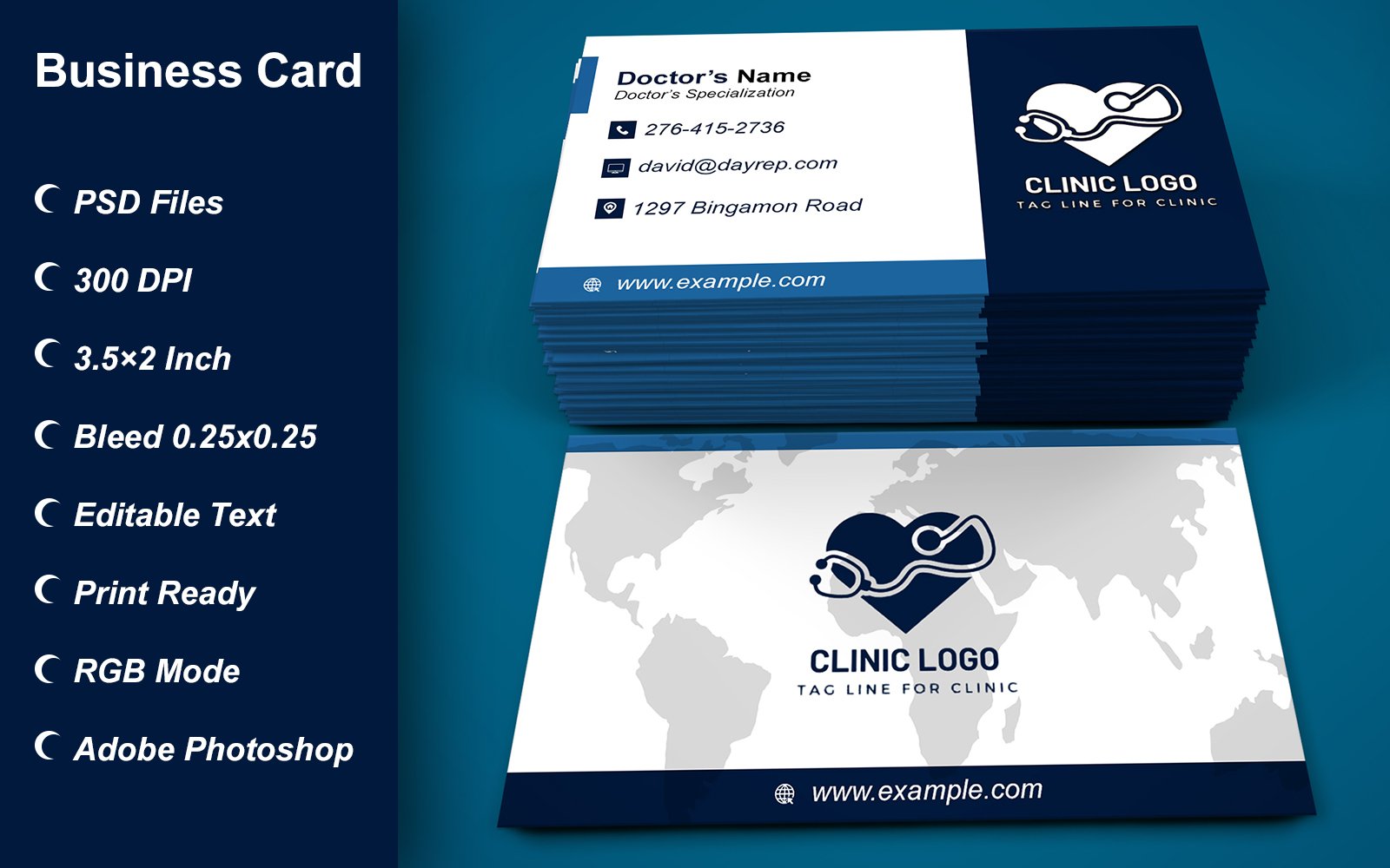Business Card Template for Clinic - Doctor - Hospital - Customizable Designs - 626 Corporate Identity