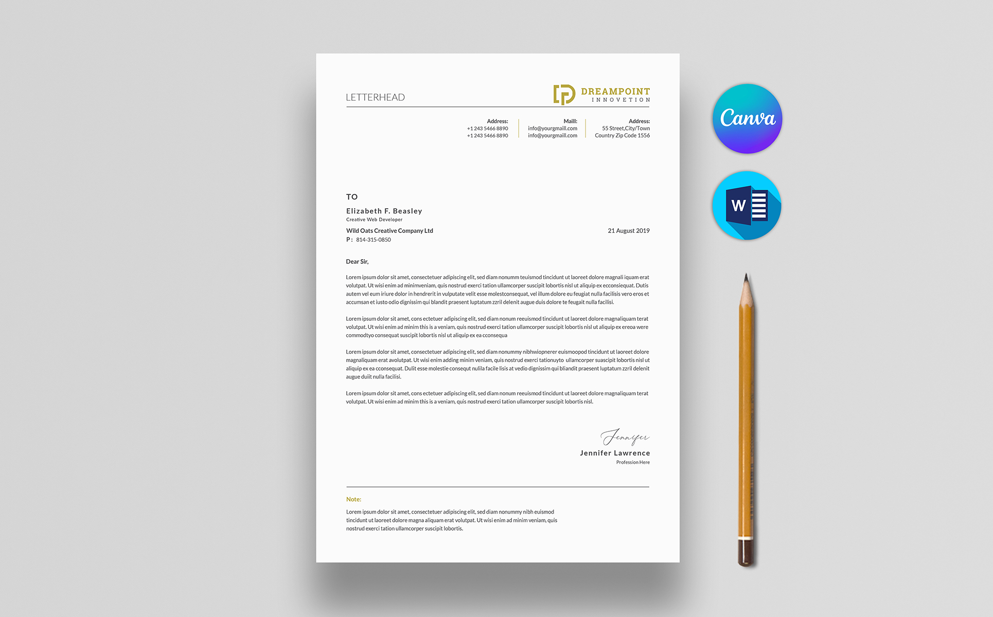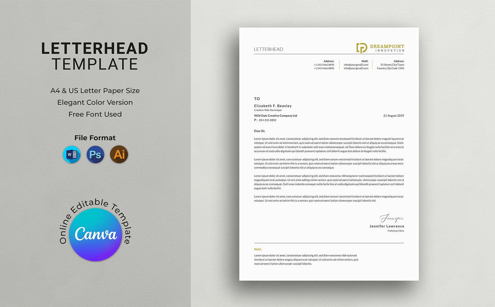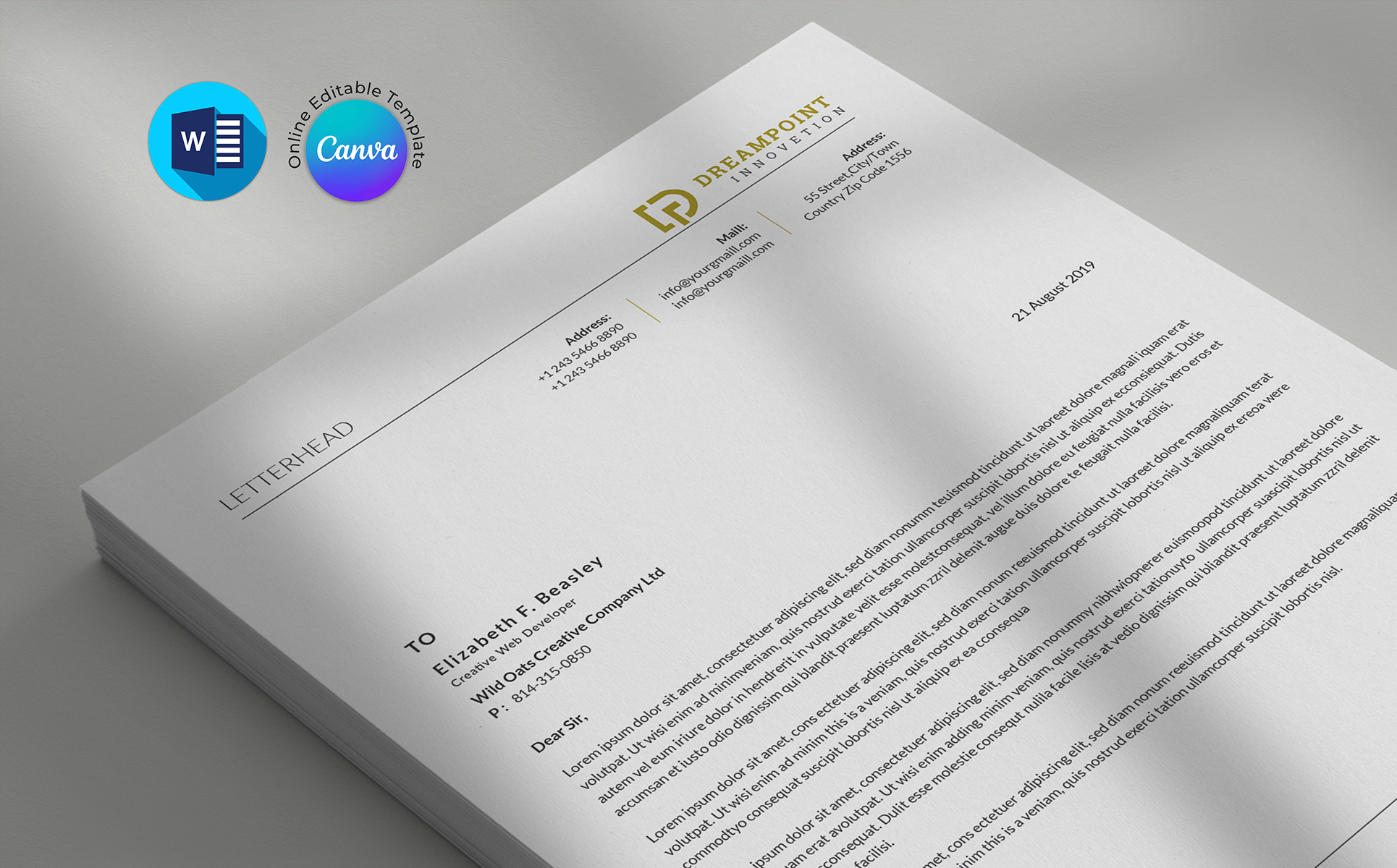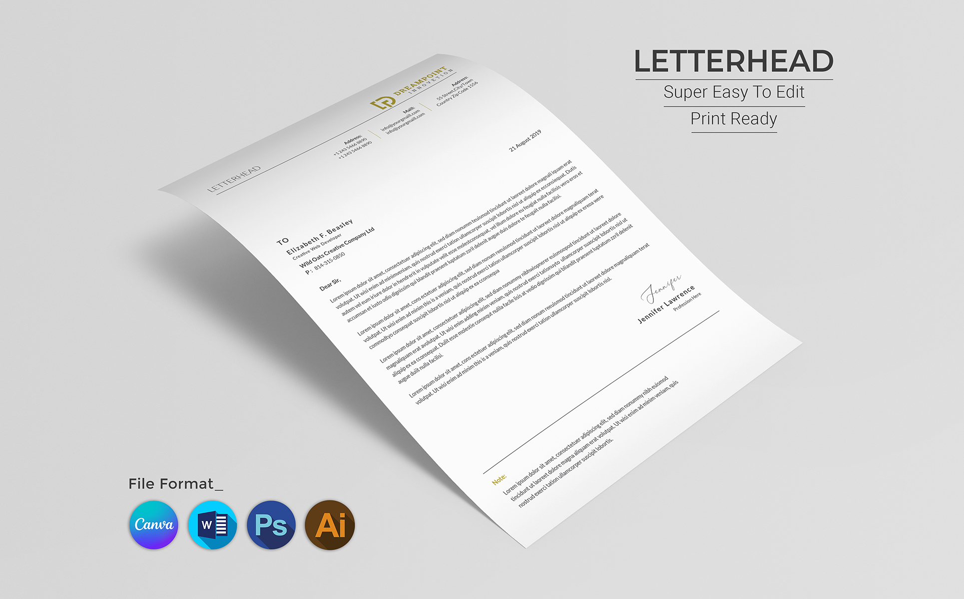 Present your business in a professional light with this modern and completely editable company letterhead template digital download! Fully customizable for everything from colors to text, you will receive this template in Canva, Illustrator, Photoshop and Microsoft Word, so you can easily edit yourself. I flawlessly create and design every aspect of my templates, such as layout, color, typography, photos and other related content, so that they are seamless, quick and easy to use.