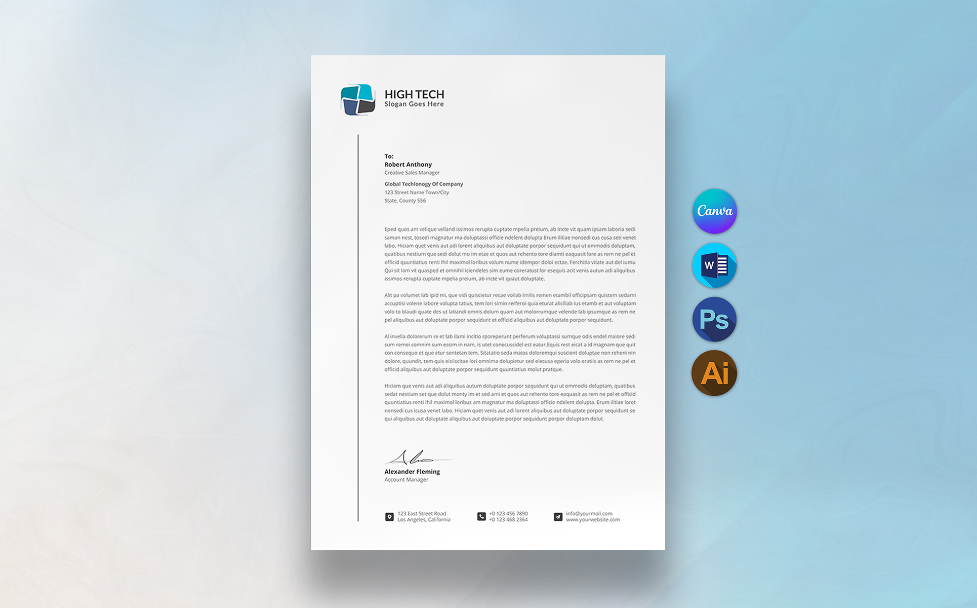Present your business in a professional light with this modern and completely editable company letterhead template digital download! Fully customizable for everything from colors to text, you will receive this template in Canva, Illustrator, Photoshop and Microsoft Word, so you can easily edit yourself. I flawlessly create and design every aspect of my templates, such as layout, color, typography, photos and other related content, so that they are seamless, quick and easy to use.