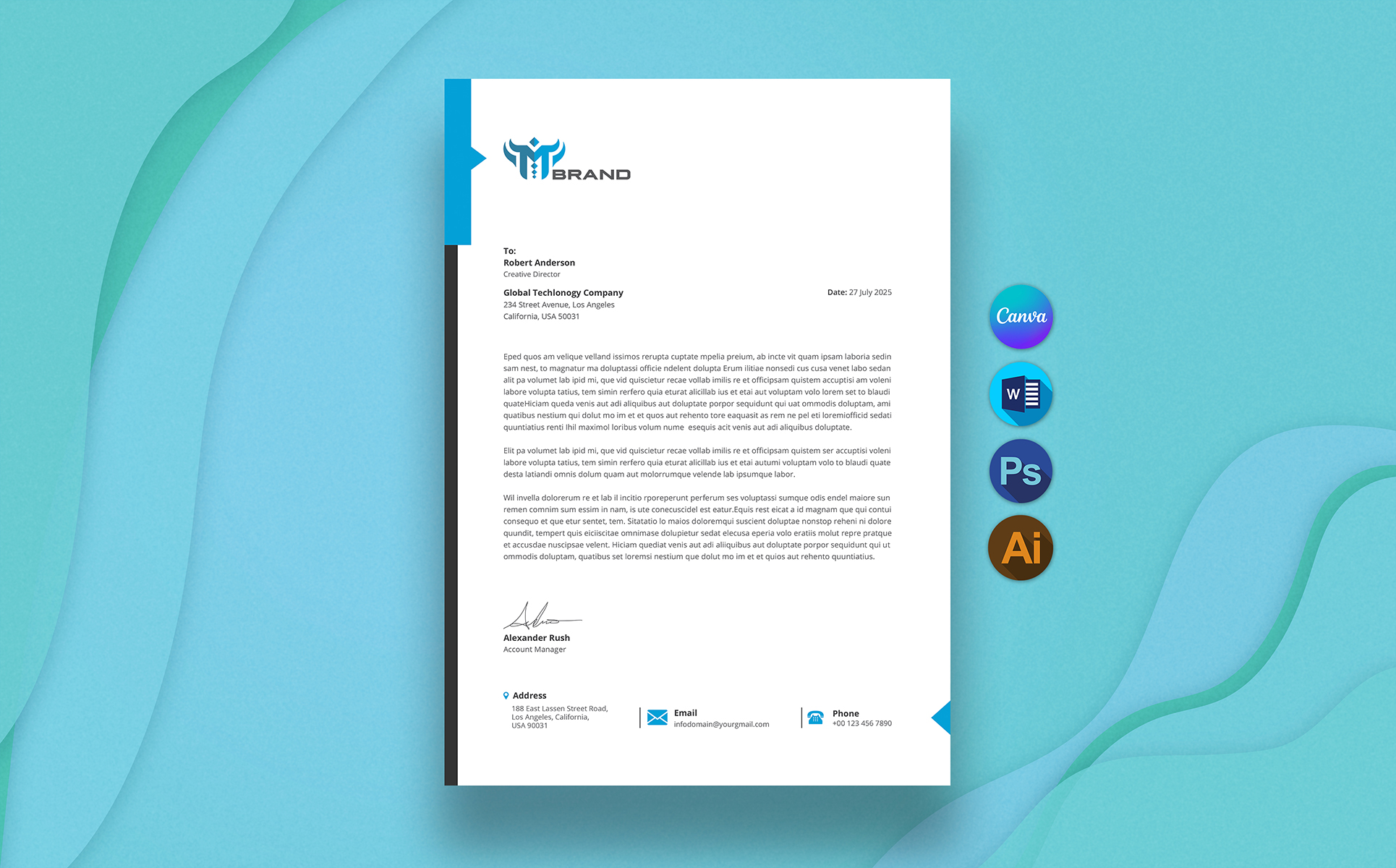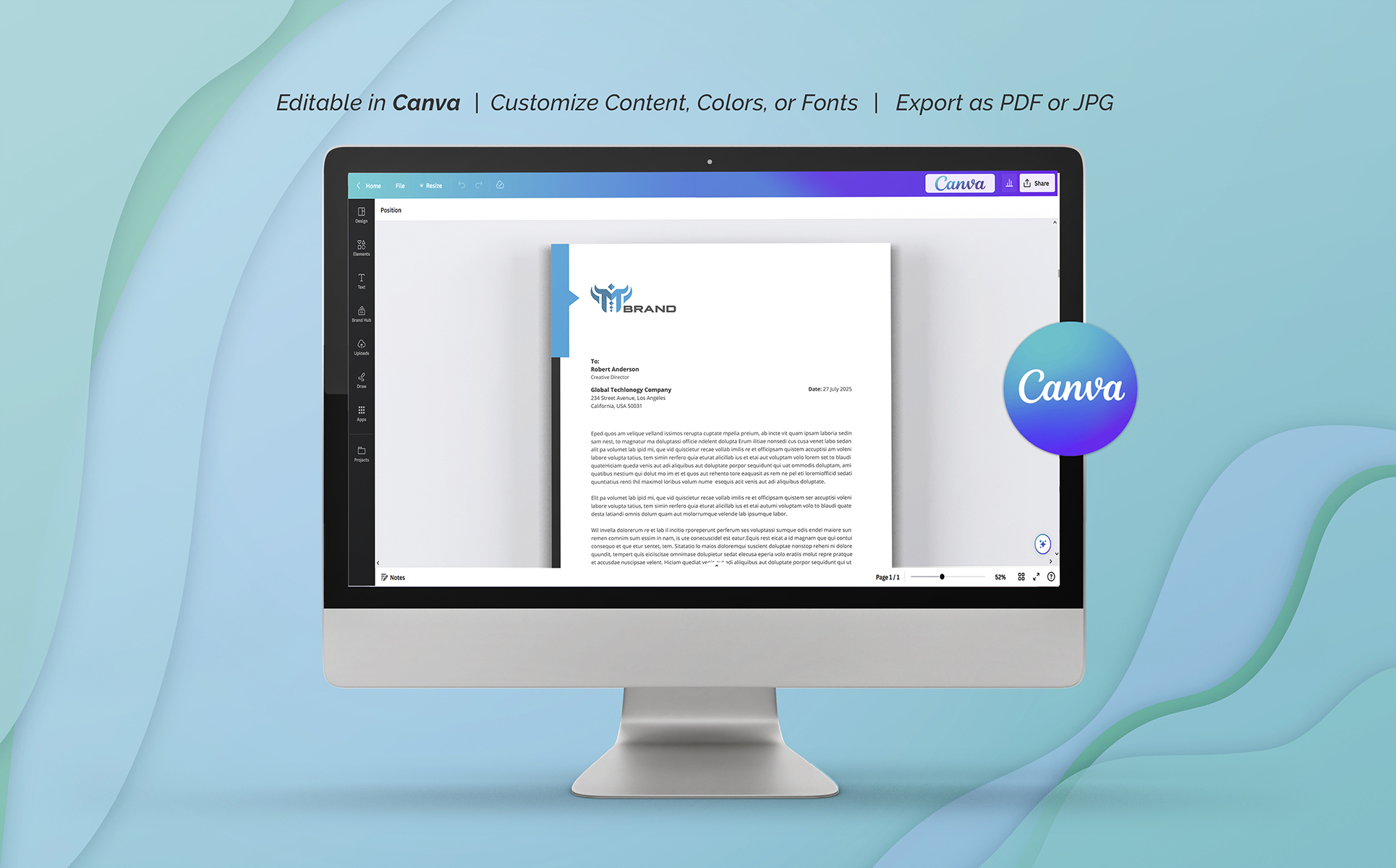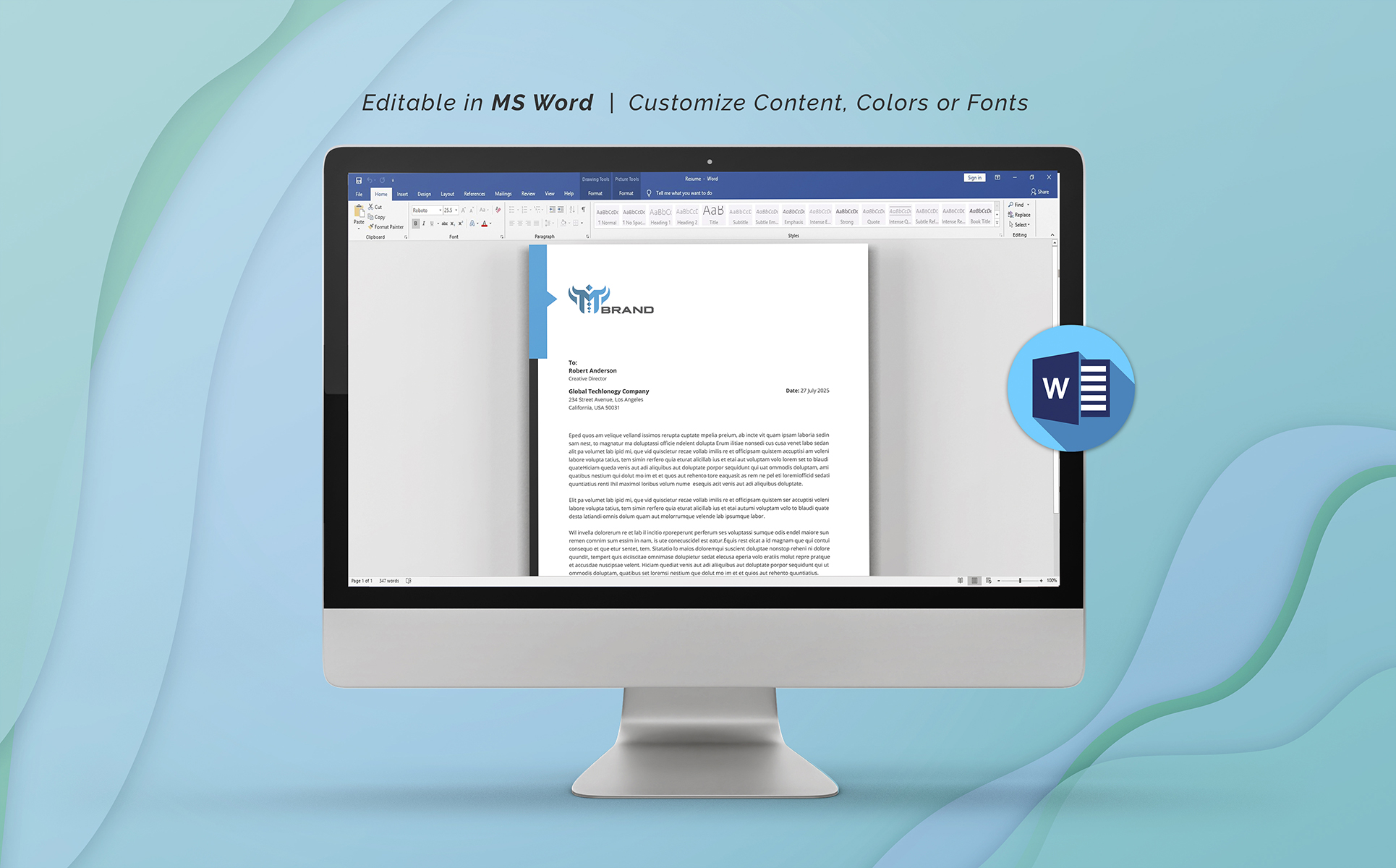 Business Letterhead Template Editable | Company Letterhead Design for Word & Canva Corporate Identity