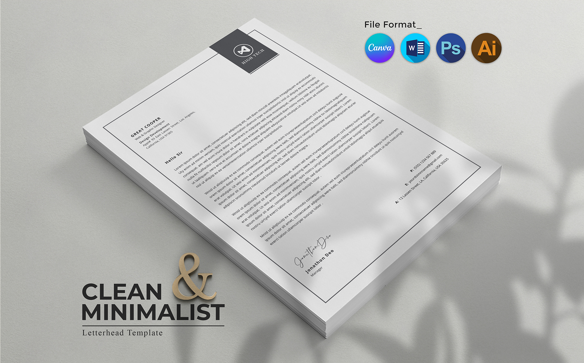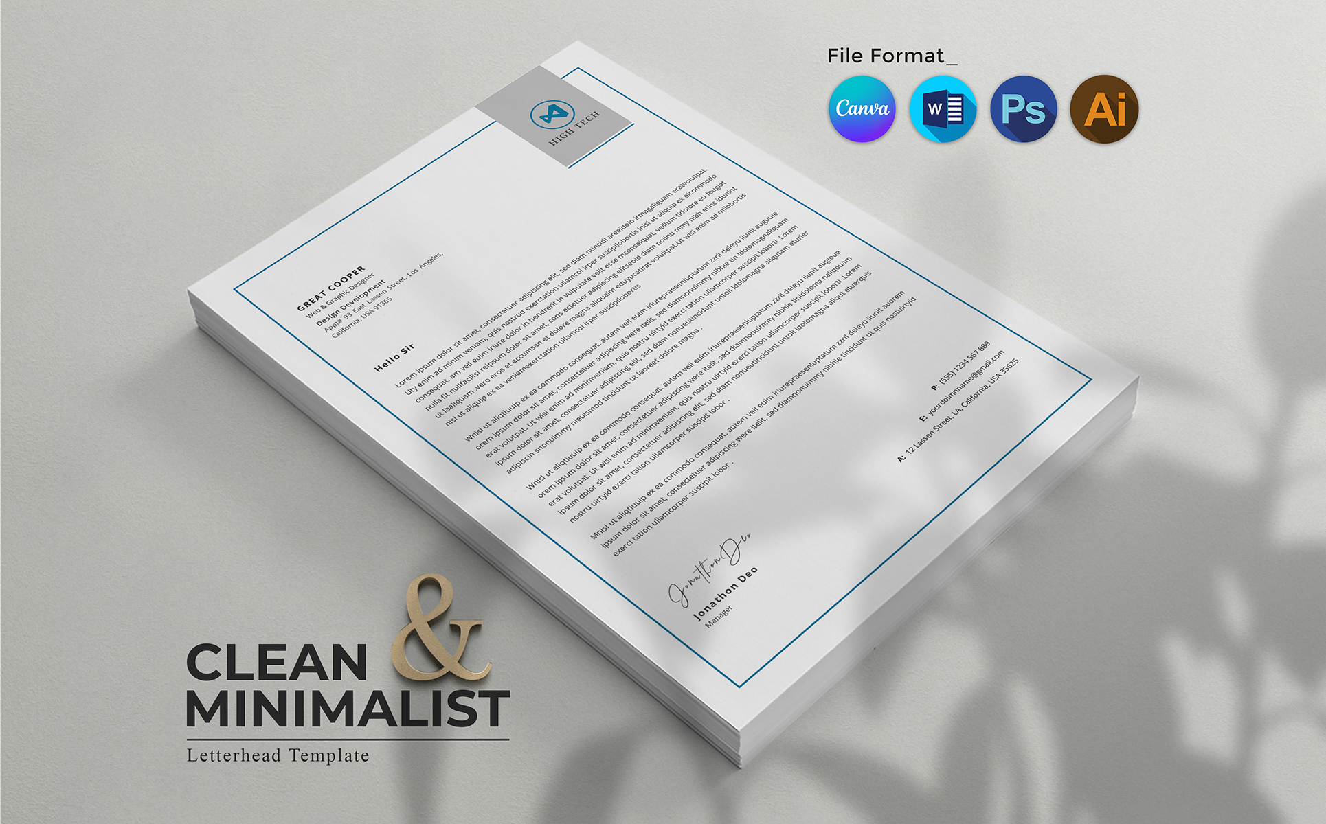 Present your business in a professional light with this modern and completely editable company letterhead template digital download! Fully customizable for everything from colors to text, you will receive this template in Canva, Illustrator, Photoshop and Microsoft Word, so you can easily edit yourself. I flawlessly create and design every aspect of my templates, such as layout, color, typography, photos and other related content, so that they are seamless, quick and easy to use.