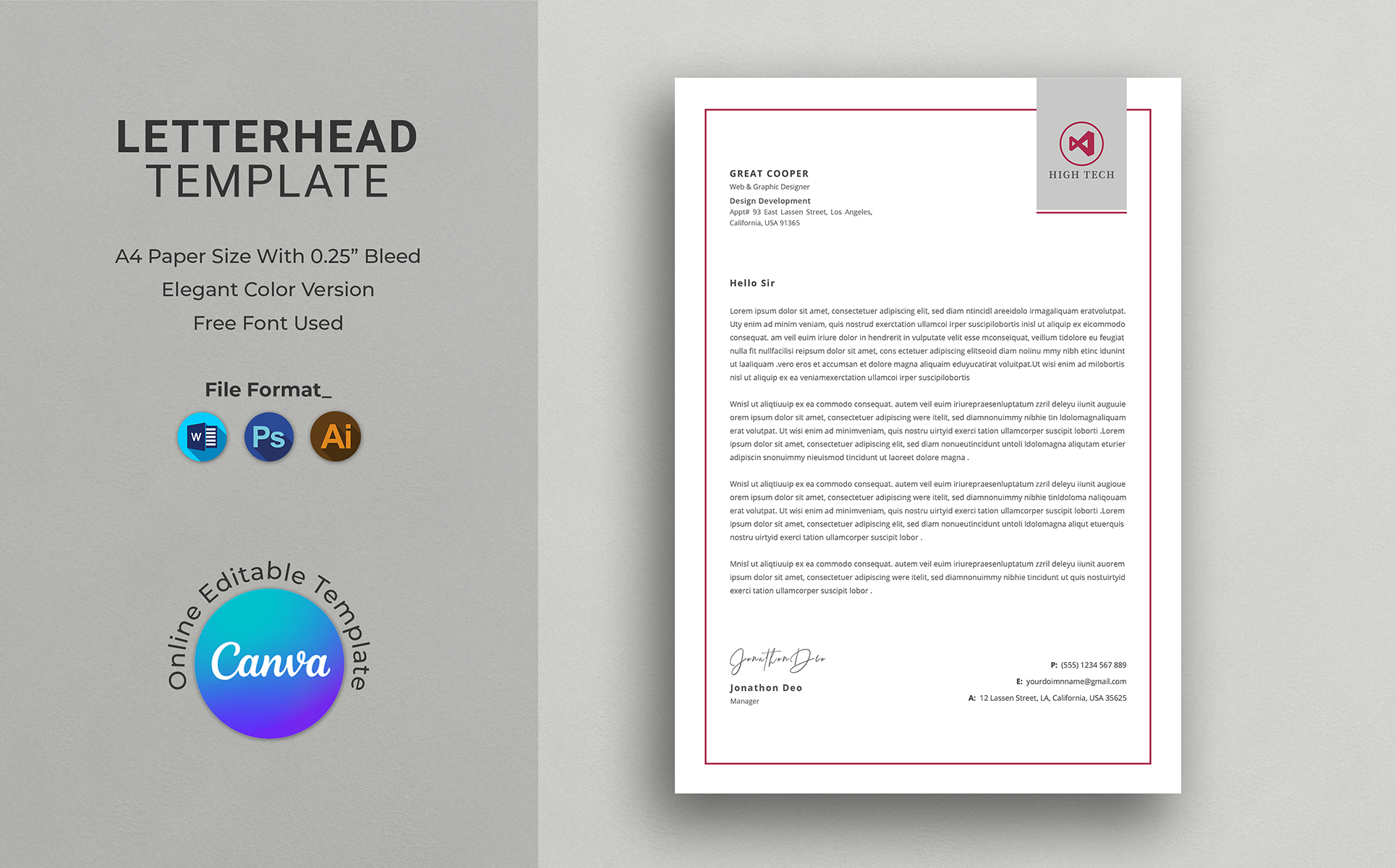 High Tech A4 Letterhead Design Template Canva Corporate Identity