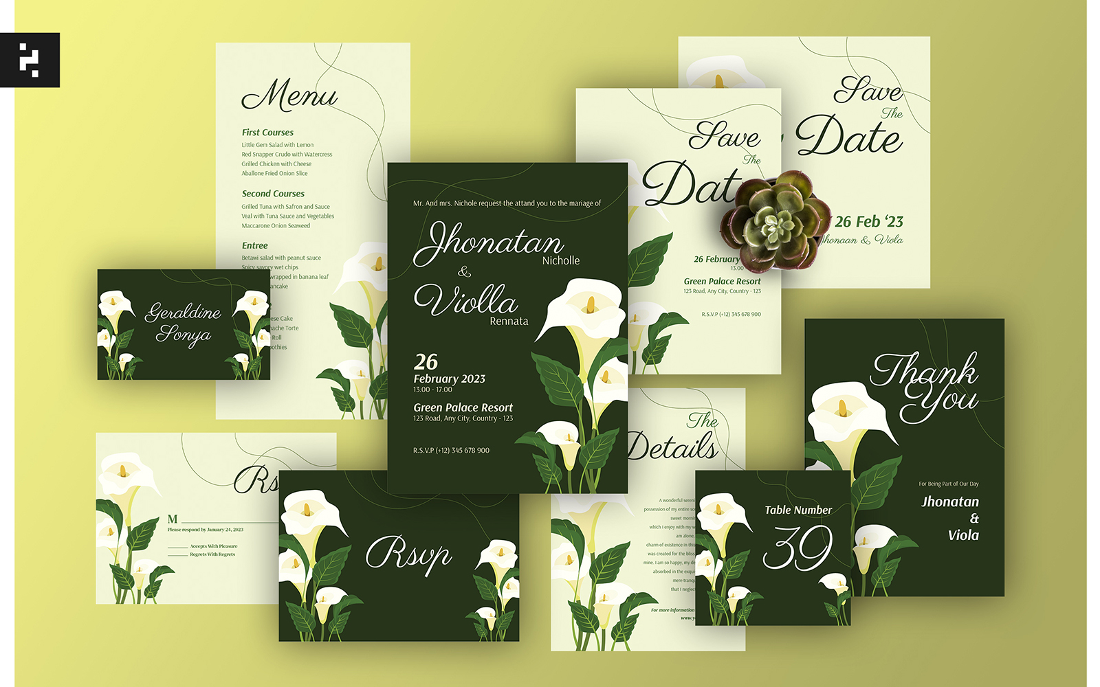 Cala Lily Wedding Invitation Suite Corporate Identity