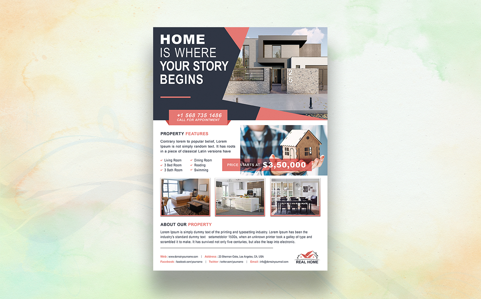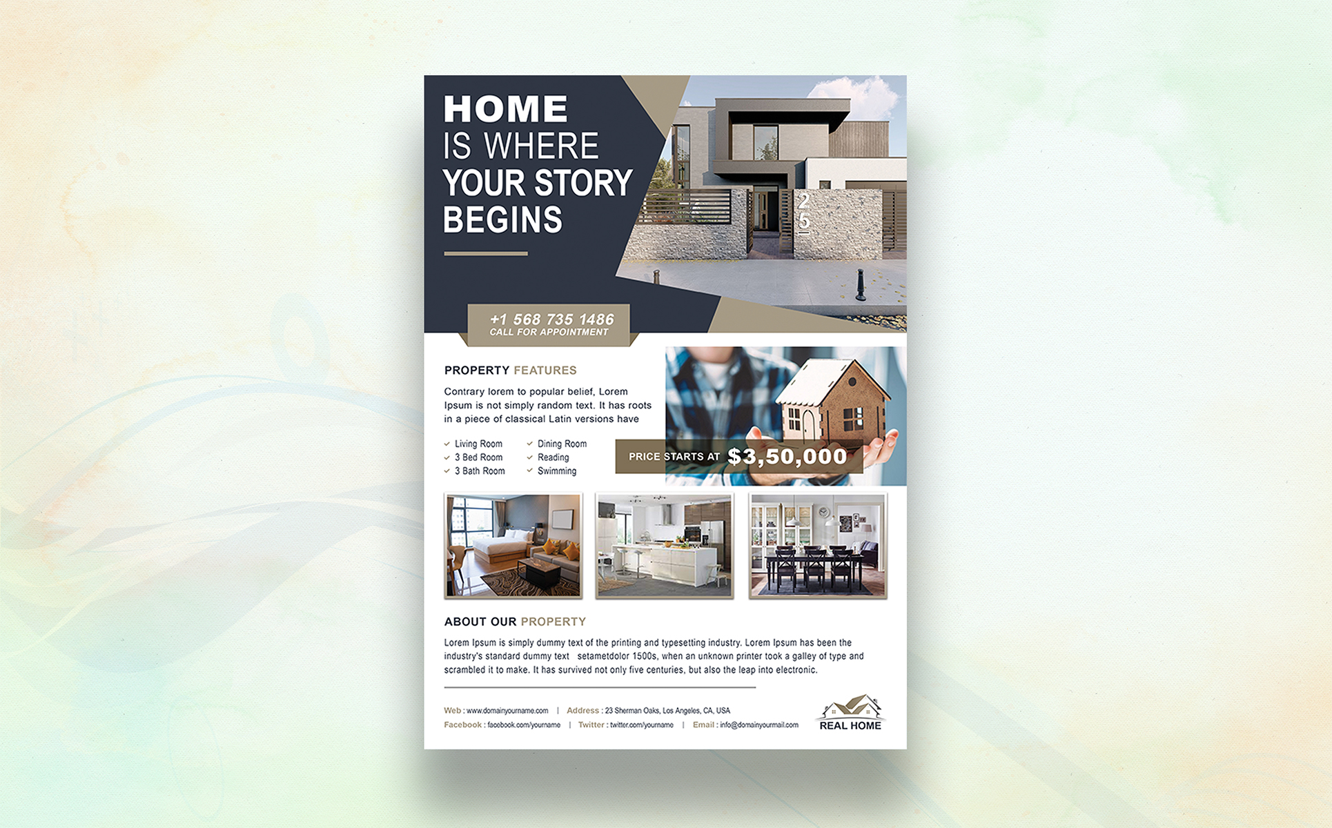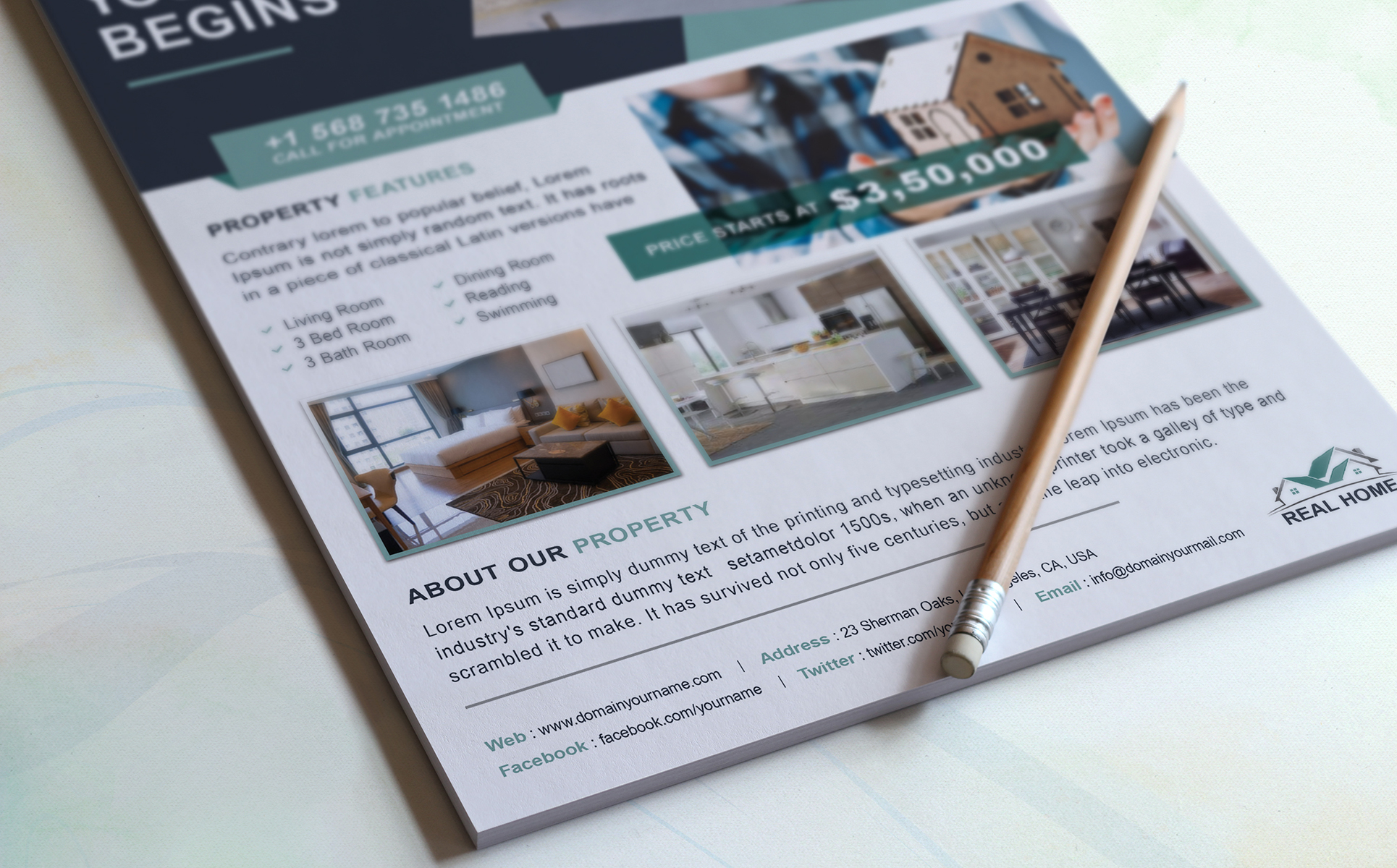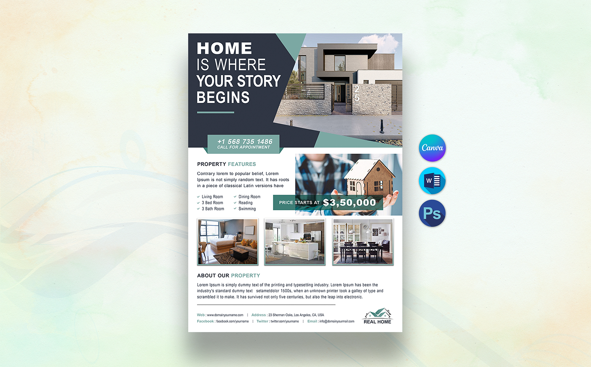 Real Estate Flyer Template is a great tool for promoting your real estate business also useful for a realtor, real estate agent and interior design business. You can use it for real estate listings, interior business, advertising homes or property for sale or houses for rent.