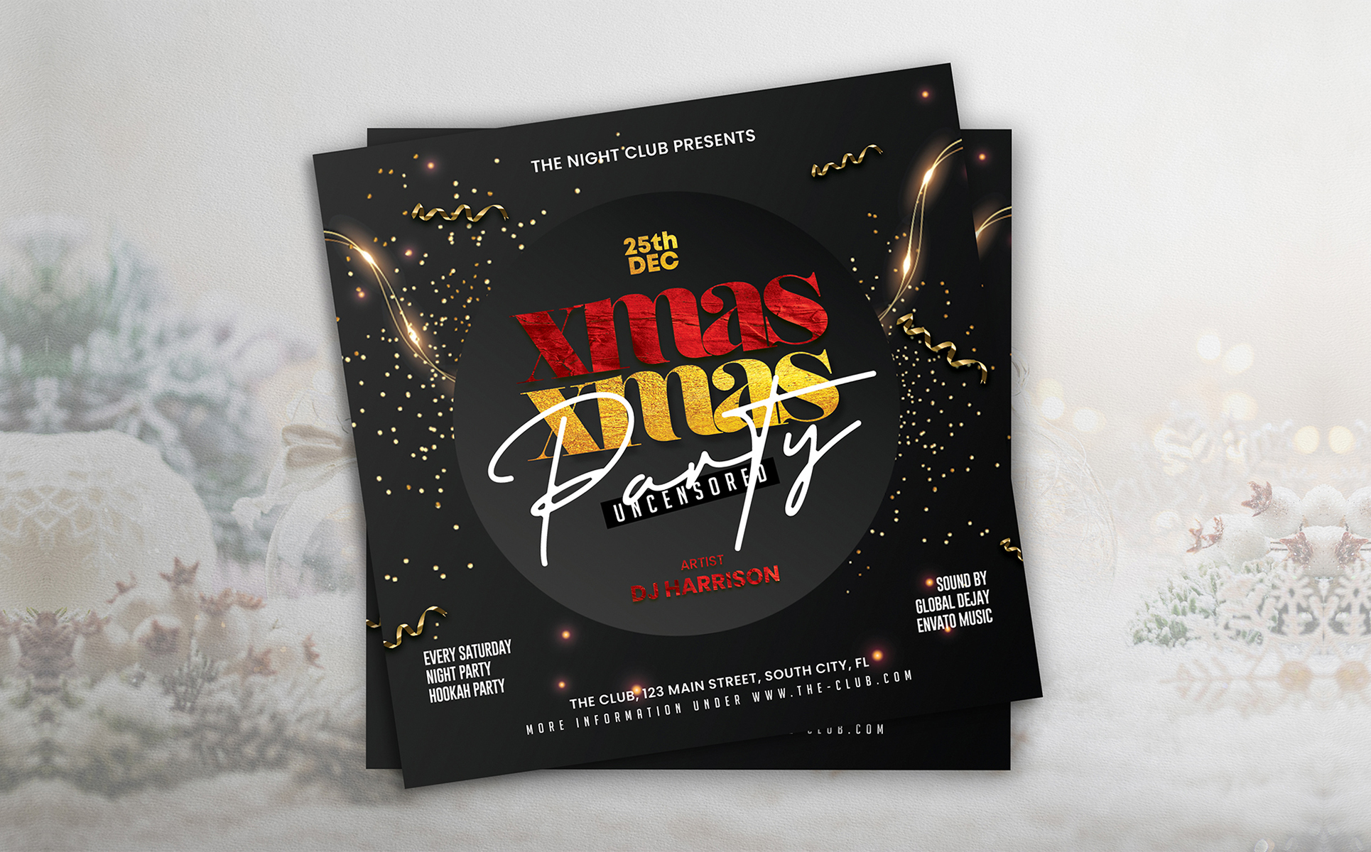 Christmas Party Flyer Template PSD. Fully customizable party flyer template for Photoshop. Easy to use and fully customizable. Buy this template now and start using it. Shorten your working time.