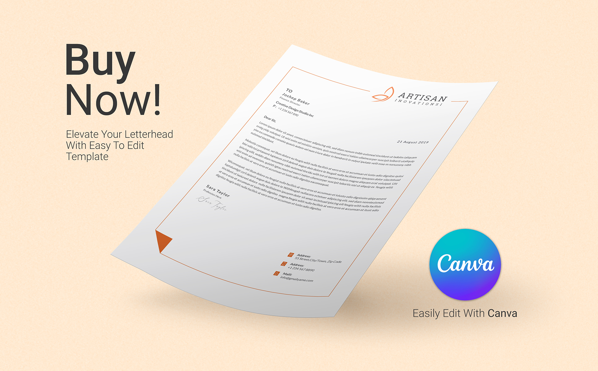Present your business in a professional light with this modern and completely editable company letterhead template digital download! Fully customizable for everything from colors to text, you will receive this template in Canva, Illustrator, Photoshop and Microsoft Word, so you can easily edit yourself. I flawlessly create and design every aspect of my templates, such as layout, color, typography, photos and other related content, so that they are seamless, quick and easy to use.