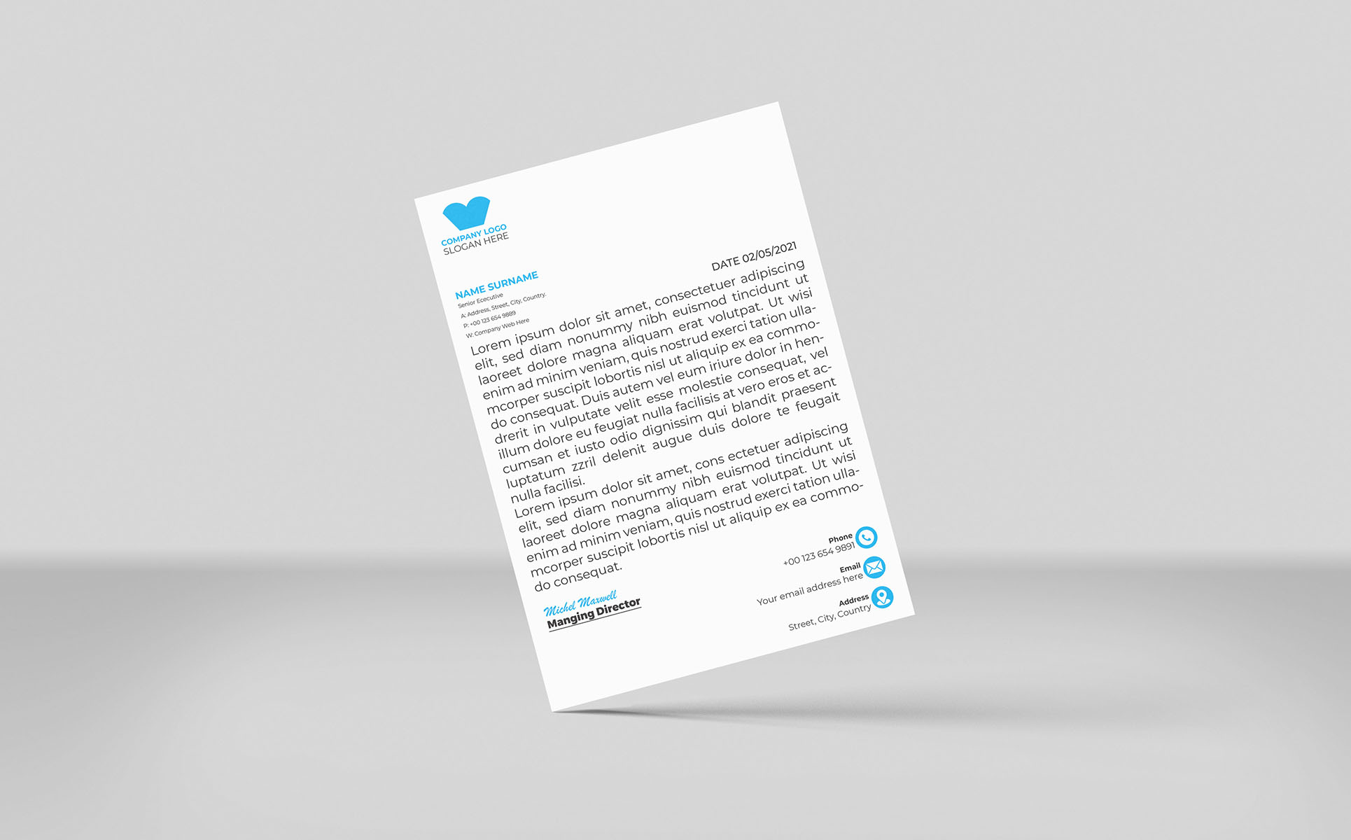 Professional, clean and modern Letterhead design template. Just drop in your own texts and it’s ready for print. This template can serve multiple purposes. Everything you see is editable right in Adobe Illustrator. All colors can easily be changed in one location. All texts are set with free fonts.