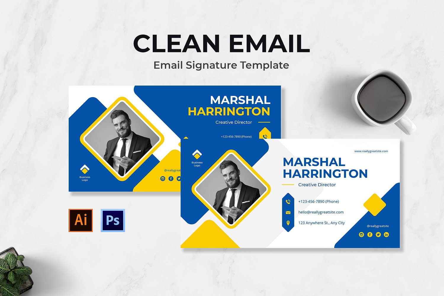 This Email Signature has fully editable and customizable PSD and AI files. This Email Signature also has creative style, and it's suitable for your any purpose such as: businesses, corporate, agency and can be also used for any other publishing like marketing promotions and company profile.