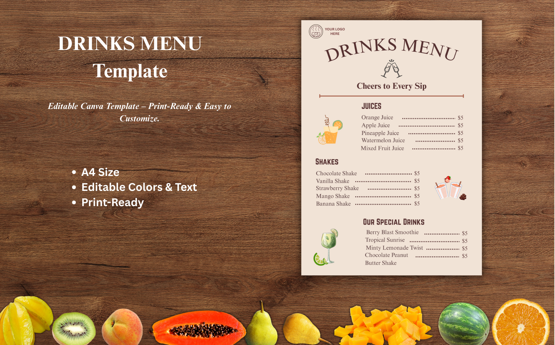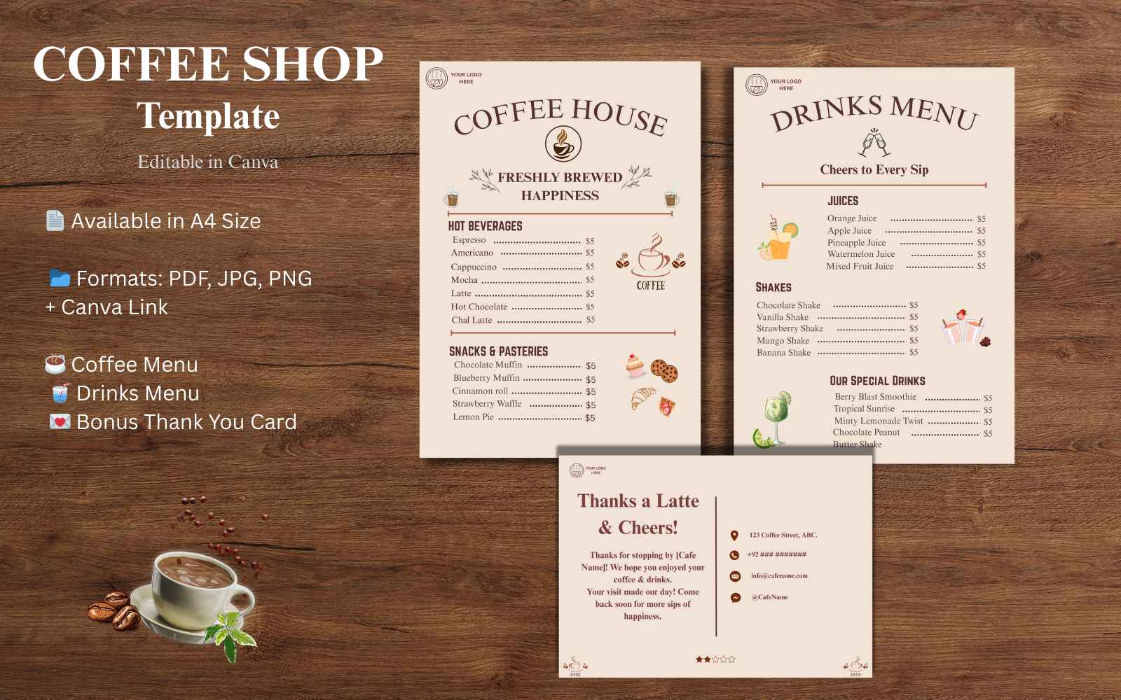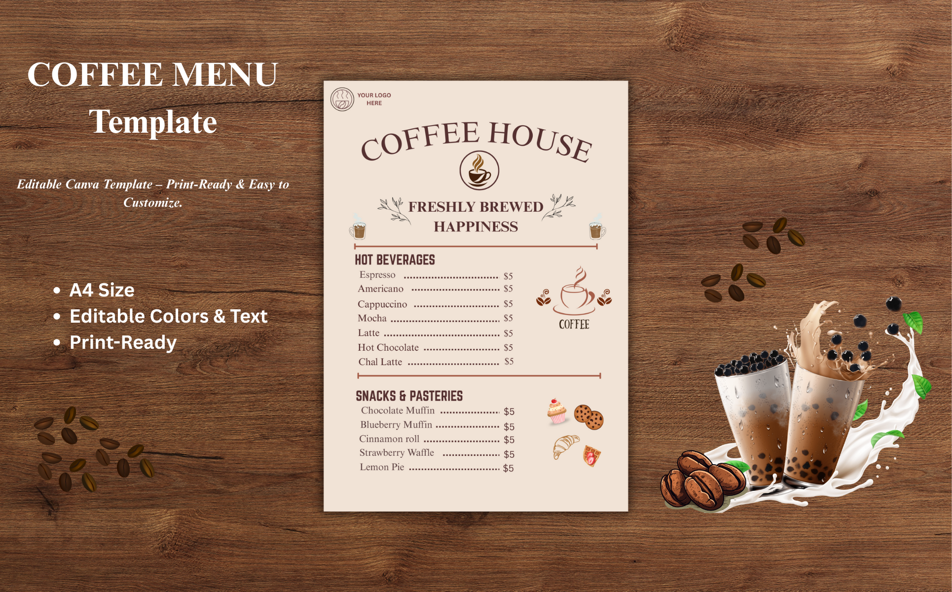 - Coffee & Drinks Menu – Fully customizable and print-ready.