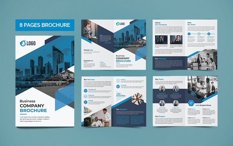This is an 8 Pages Brochure Design Template. This template download contains a 300 dpi print-ready CMYK PSD and RGB ai files.