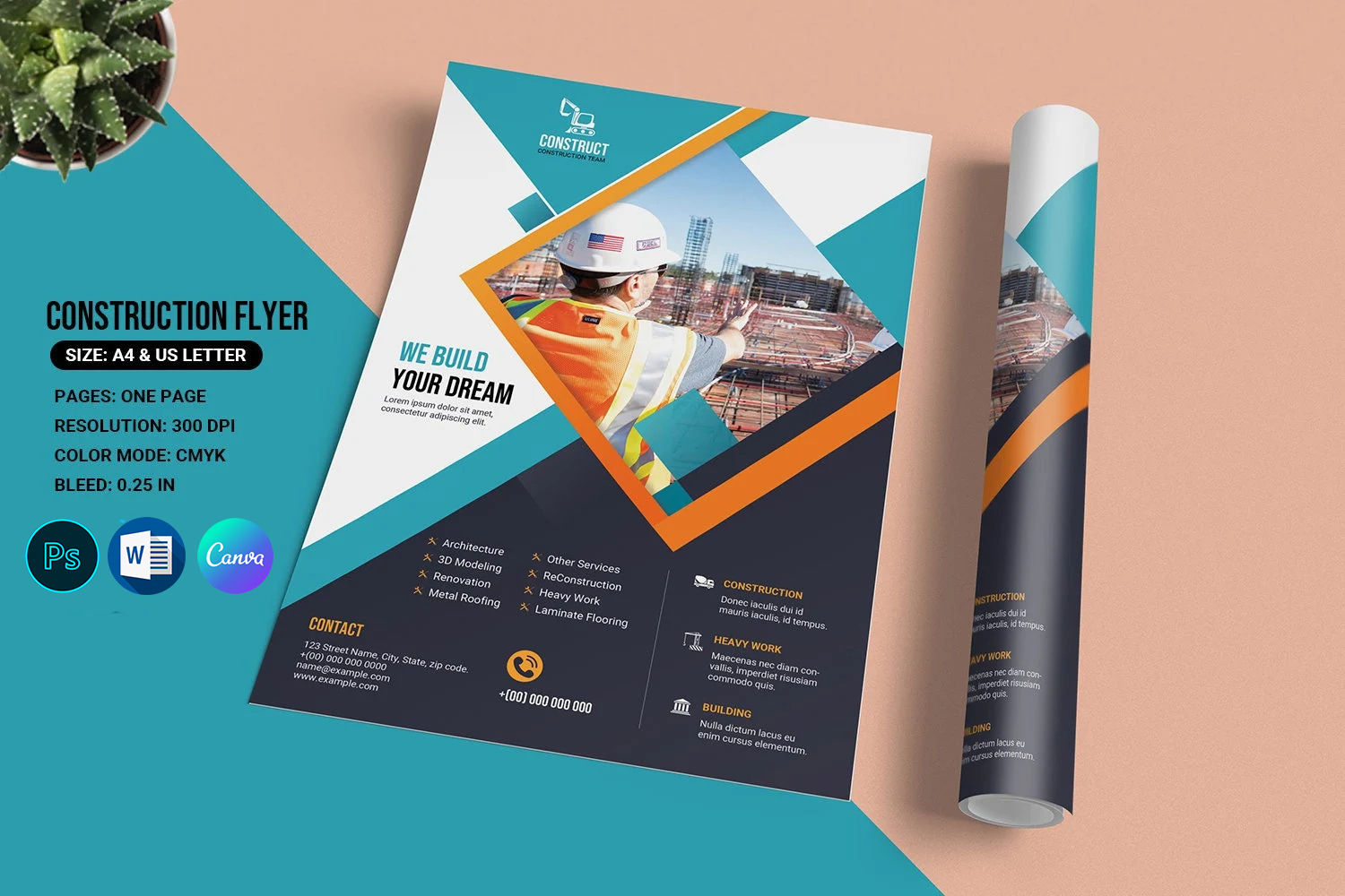 Construction Company Flyer Printable Template Corporate Identity