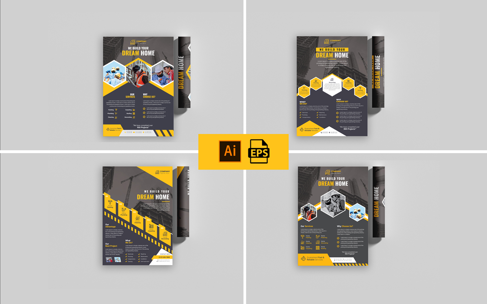 This is a Construction Flyer Template Bundle. All main elements are editable and customizable.