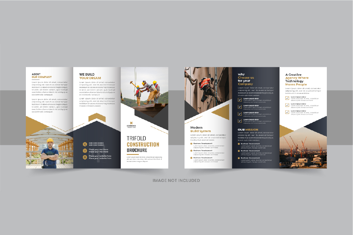Construction trifold brochure or home renovation trifold brochure. All type of Corporate business company, agricultural Company, Home Sale, Land Sale or other property selling company could use this Construction trifold brochure or home renovation trifold brochure
