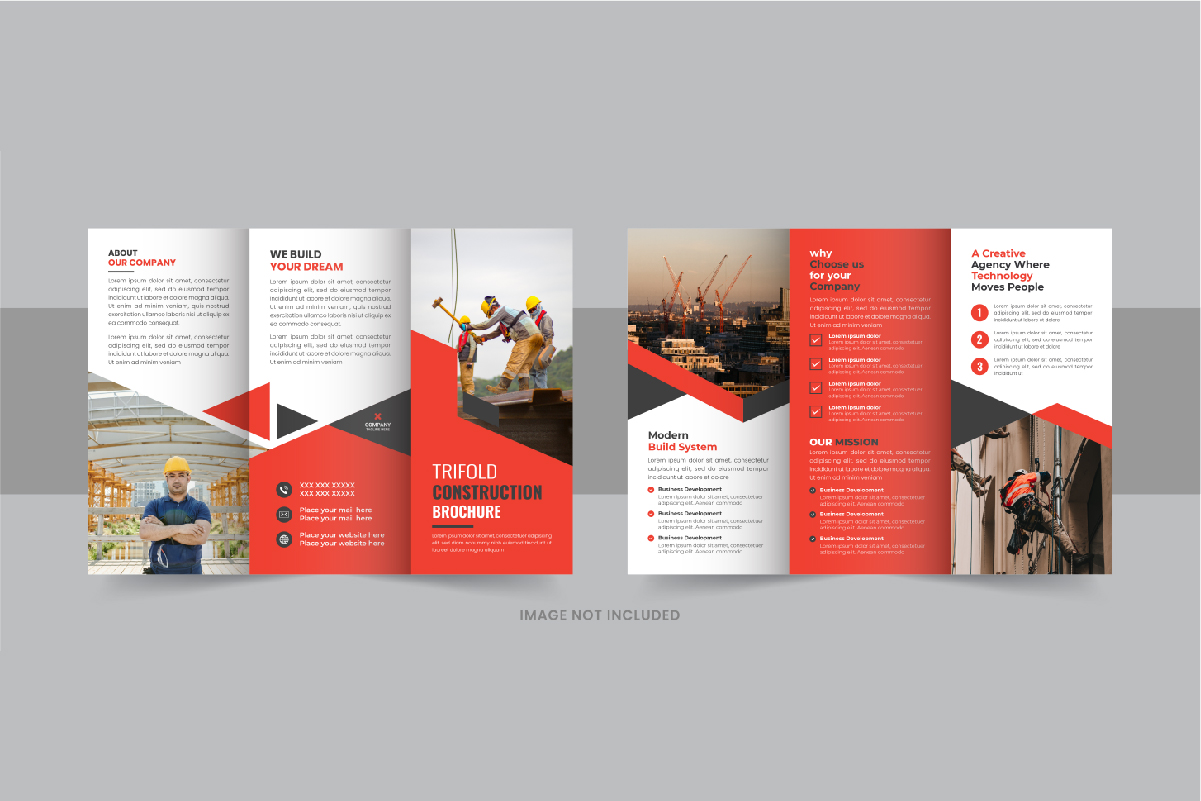 Construction trifold brochure or home renovation trifold brochure. All type of Corporate business company, agricultural Company, Home Sale, Land Sale or other property selling company could use this Construction trifold brochure or home renovation trifold brochure