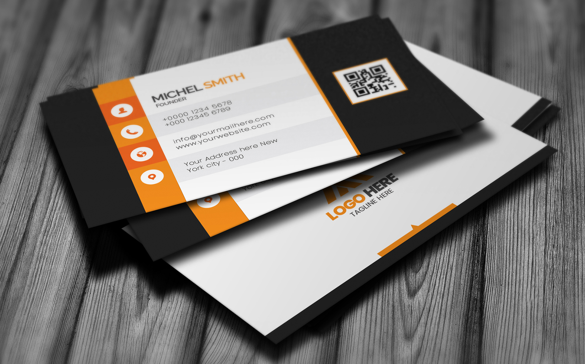 A sleek business card for corporate or personal use. Fully editable PSD files include front and back designs. Easily customize text, colors, and elements in Adobe Photoshop.