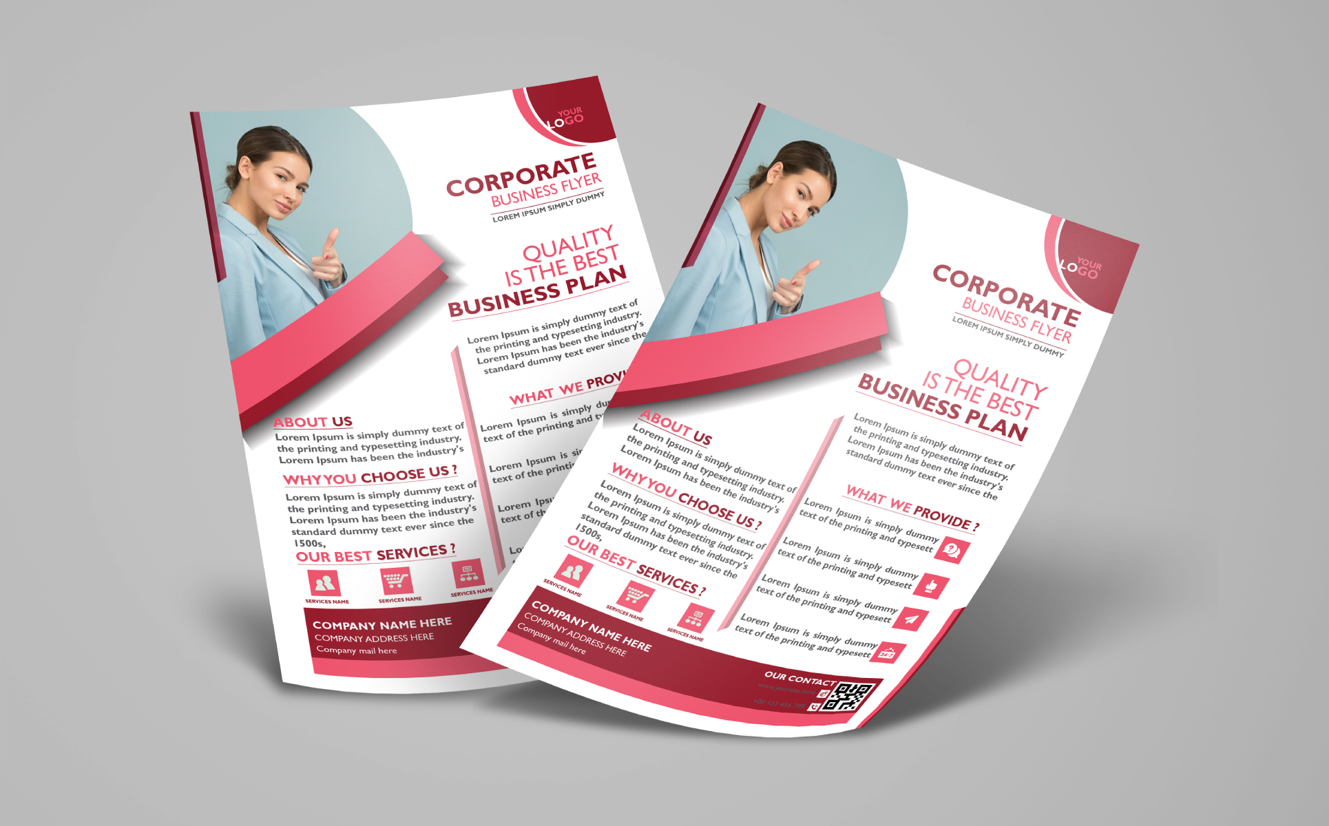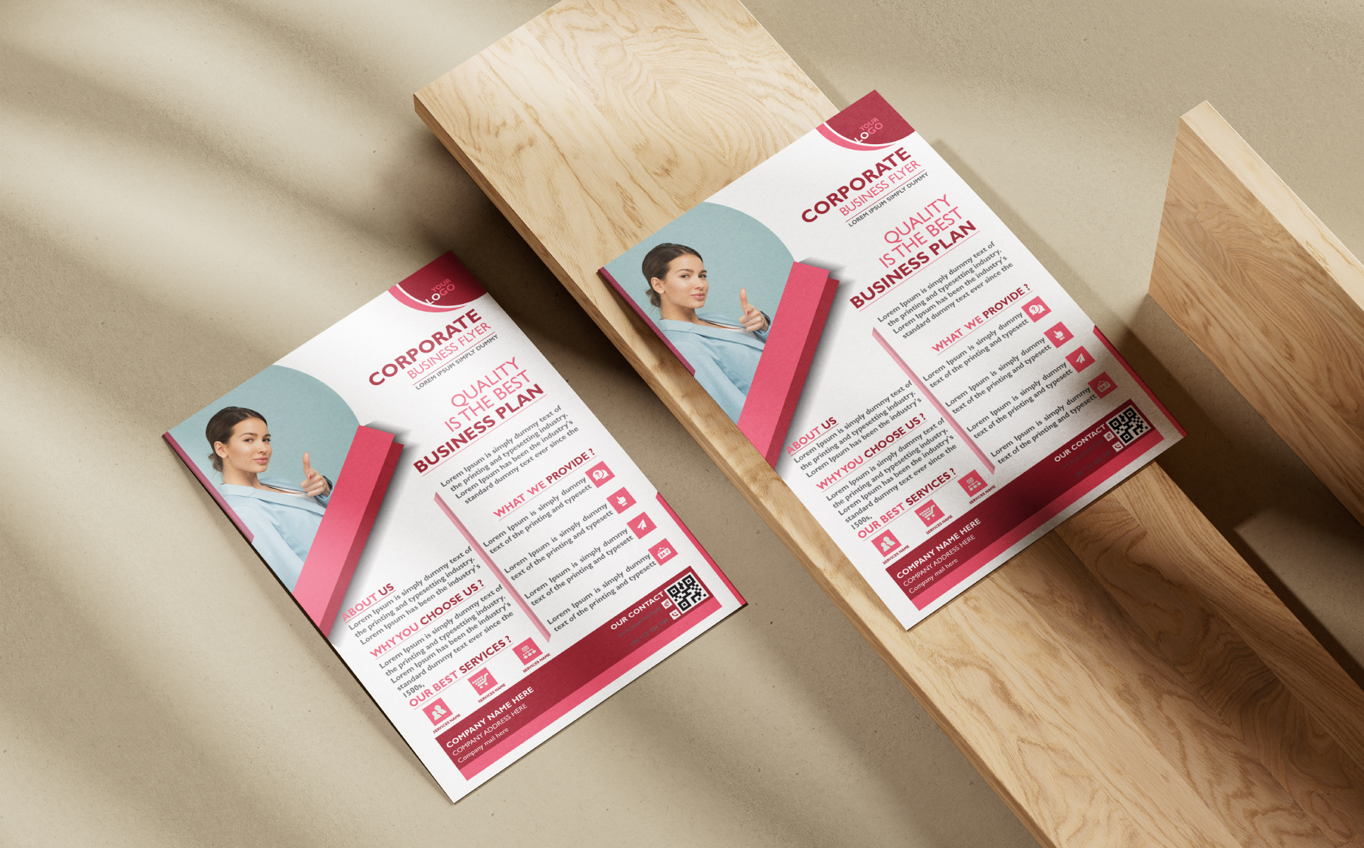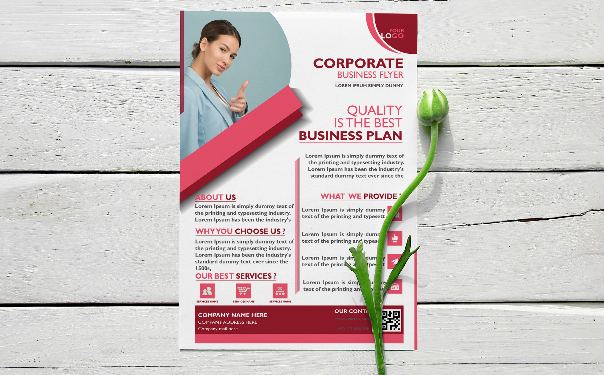 A clean and modern design Flyer Template for Corporate Business Marketing Agency. Features a sleek layout with icons, bold typography, and soothing red and white tones. Includes sections for services and contact details. Fully customizable and print-ready, perfect for professional medical branding and outreach.