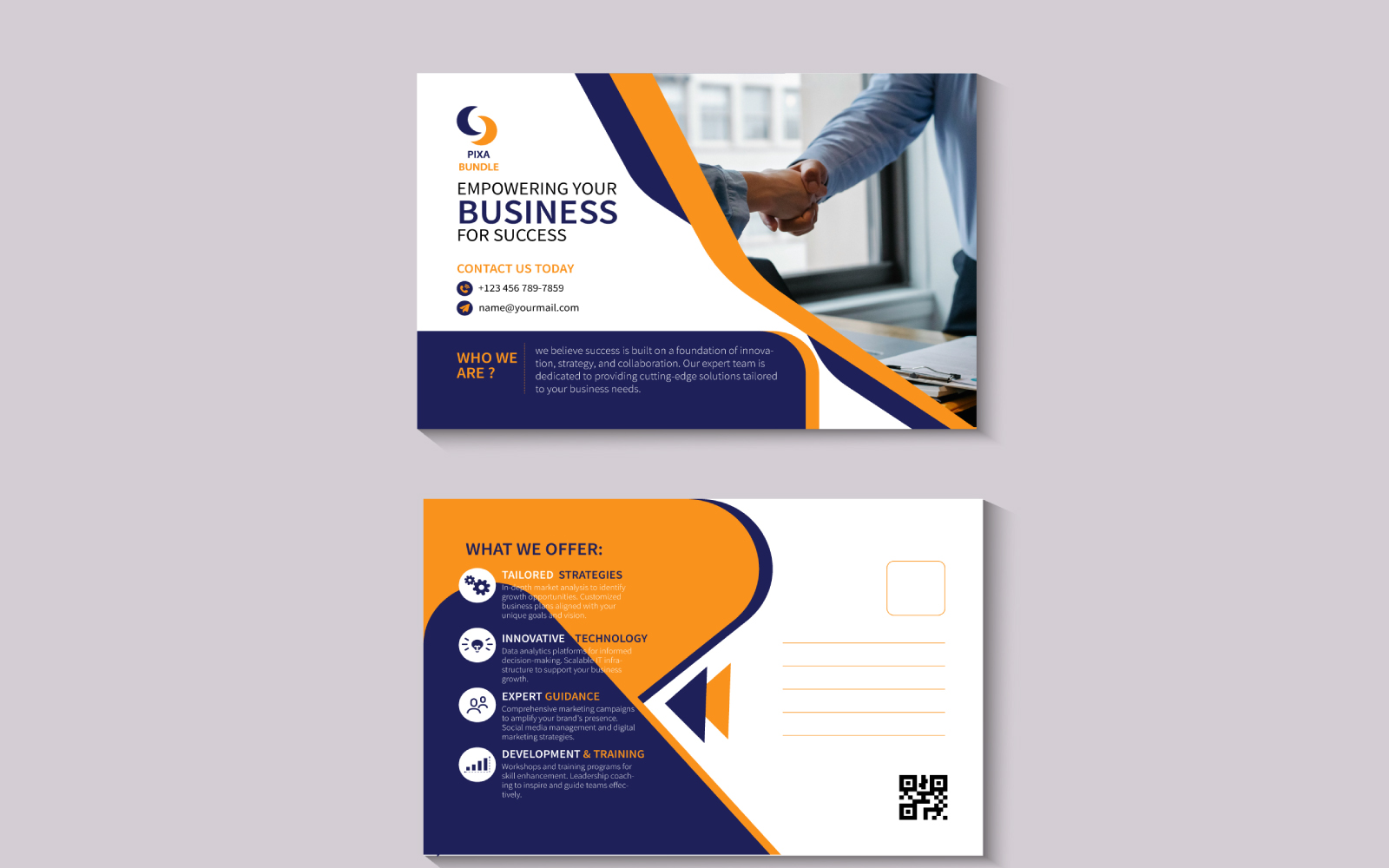 Professional, clean and modern eye-catchy Post card design template. Easy to change text and Background color. Just place your text and Image and it's Ready to Publish