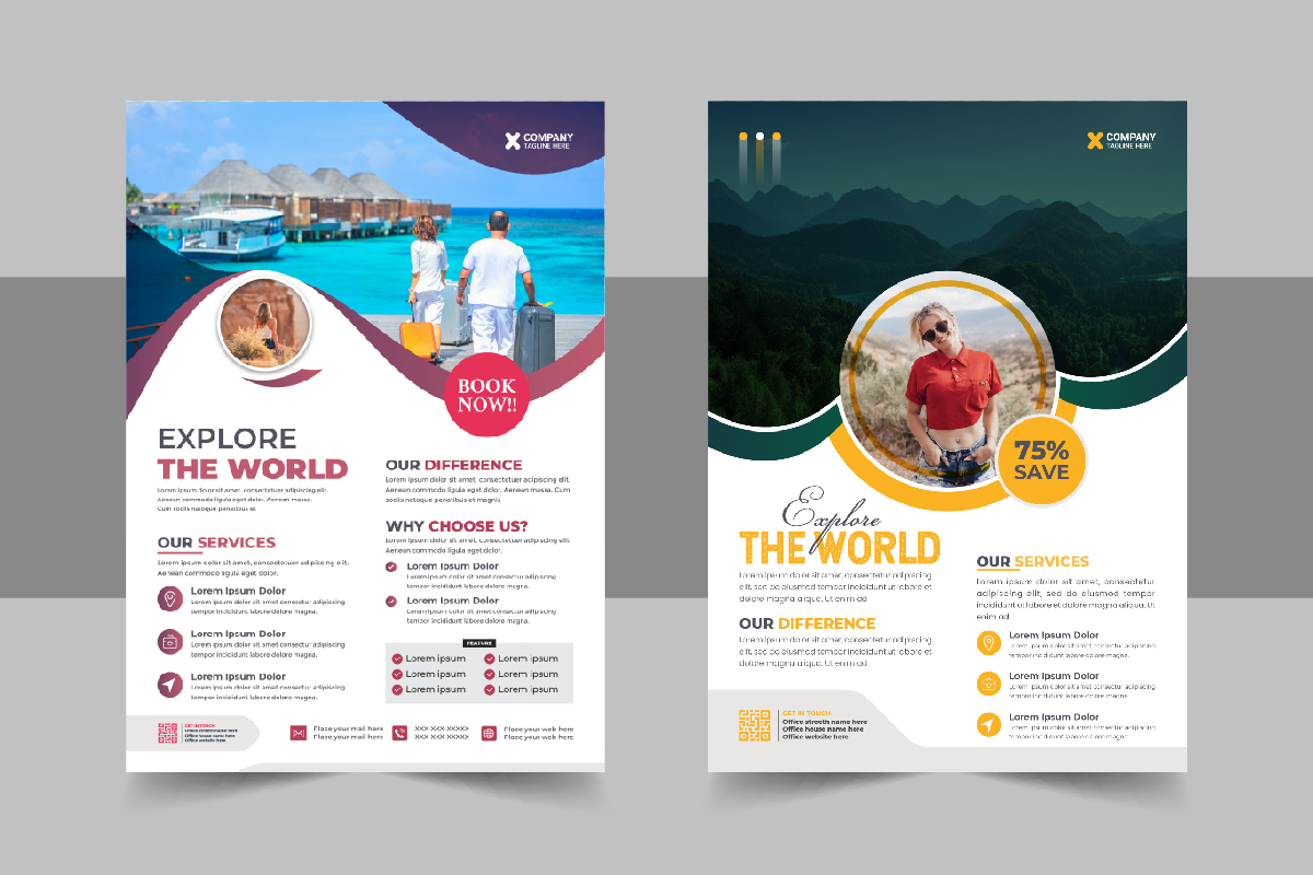 travel holiday flyer design and brochure cover page template for travel agency. All type of Corporate business company, agricultural Company, Home Sale, Land Sale or other property selling company could use this travel holiday flyer design and brochure cover page template for travel agency