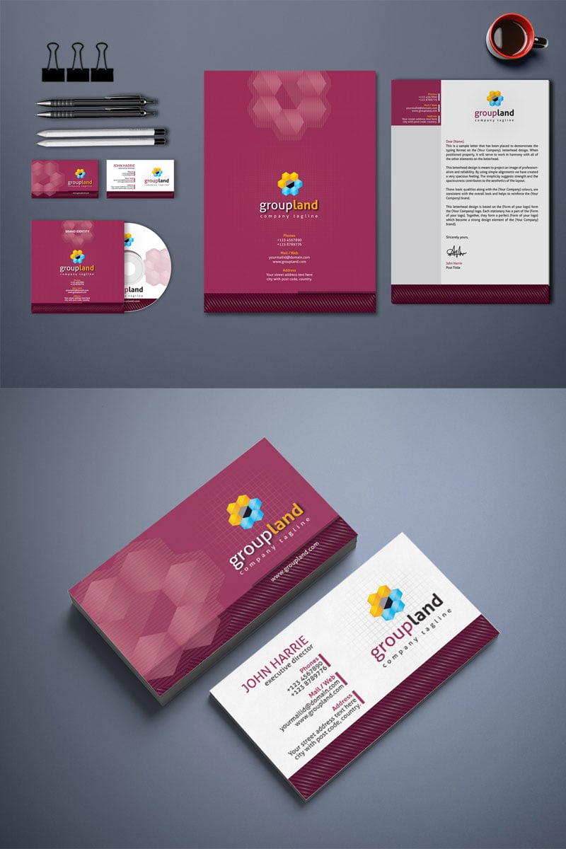 This package includes templates of compliment card, envelope, business card, CD sleeve, presentation folder, letterhead. All graphic elements are easy to customize.