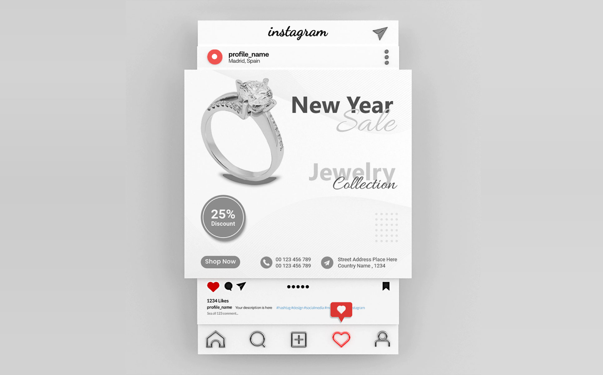 Creative and modern Jewelry social media instagram post template Corporate Identity