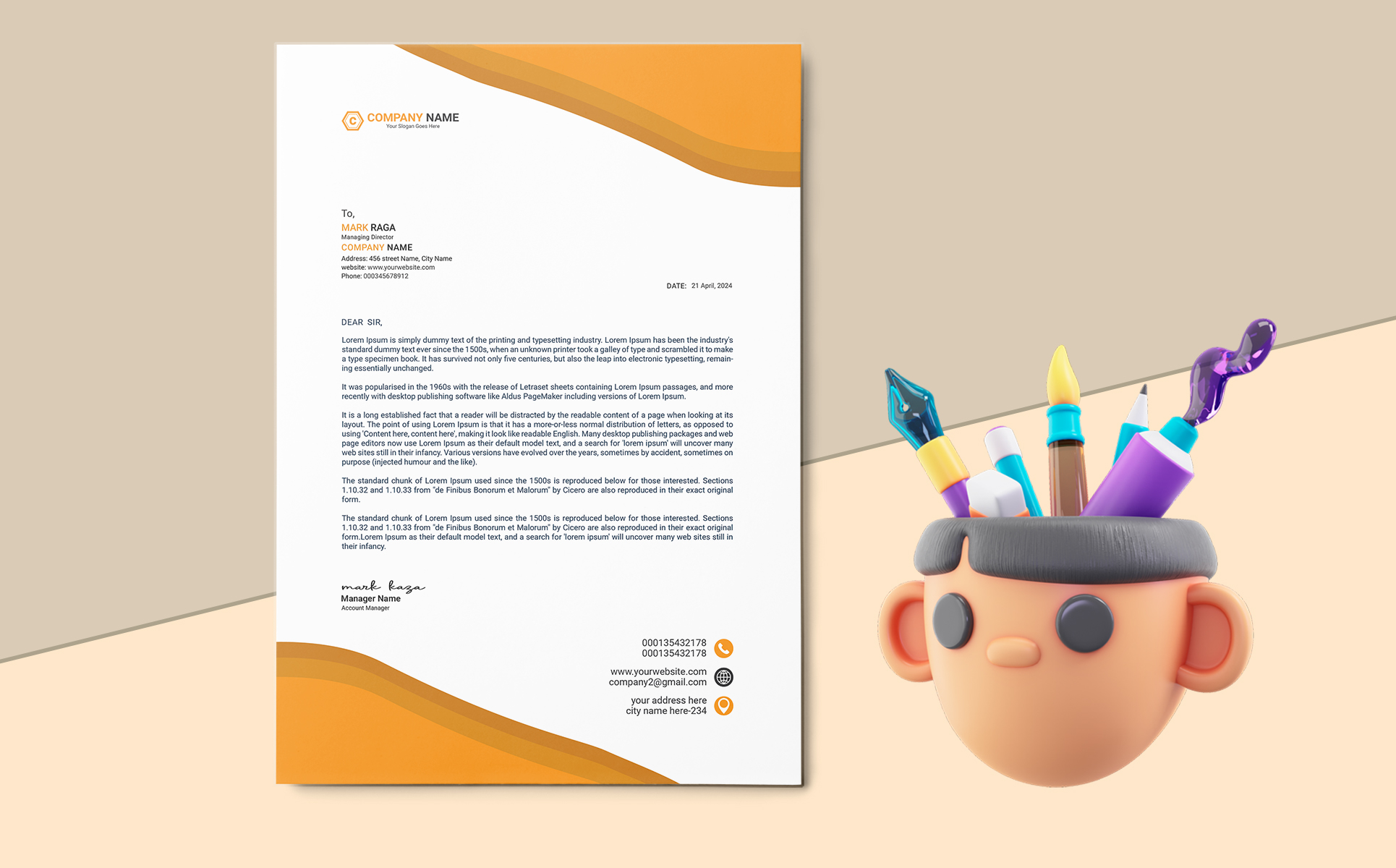 This Creative Letterhead Template is designed for anyone who wants to share their business identity with others.