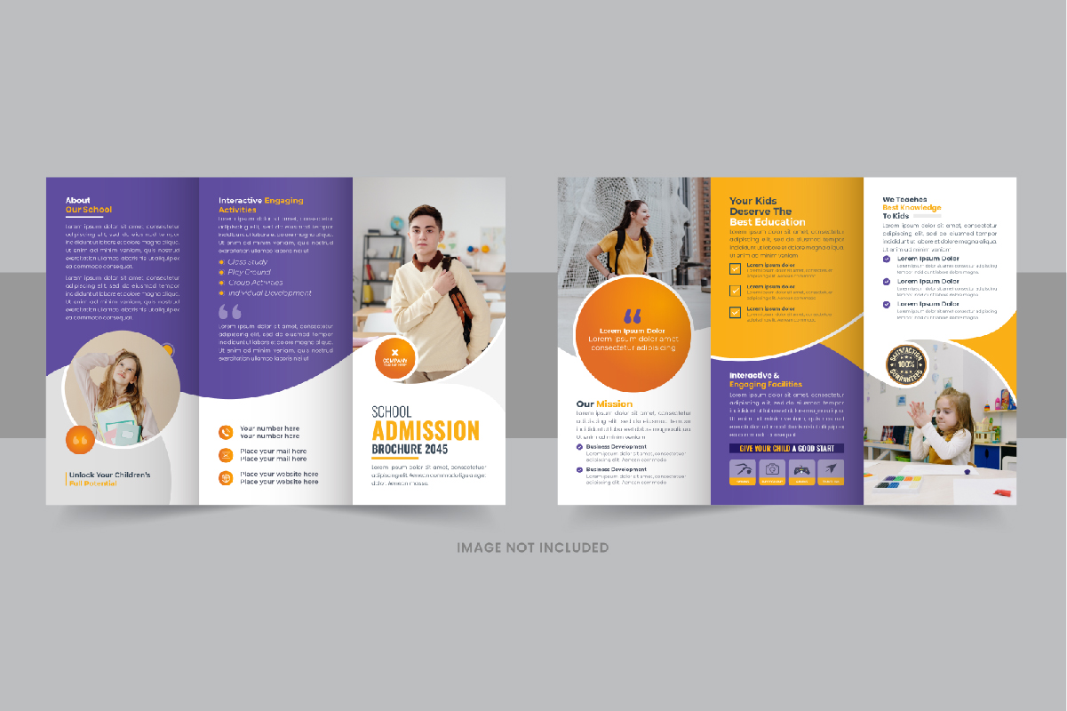 Kids back to school admission or Education trifold brochure design template. All type of Corporate business company, agricultural Company, Home Sale, Land Sale or other property selling company could use this Kids back to school admission or Education trifold brochure design template