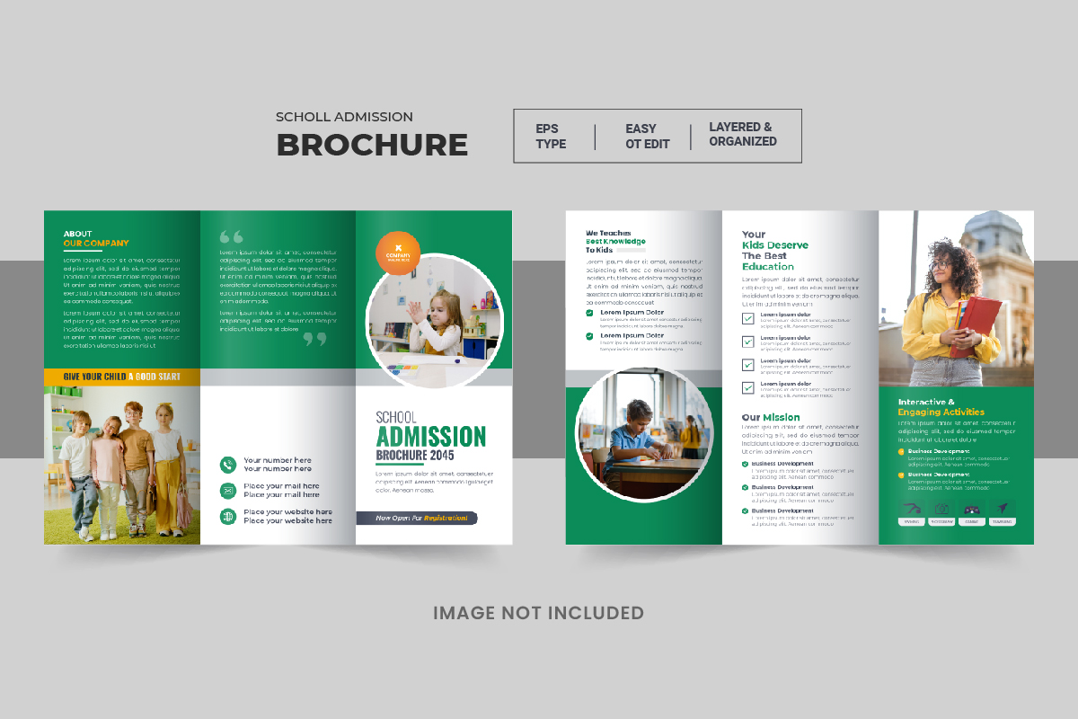 Kids Back To School Admission Trifold or Education Trifold Brochure Template. All type of Corporate business company, agricultural Company, Home Sale, Land Sale or other property selling company could use this Kids Back To School Admission Trifold or Education Trifold Brochure Template