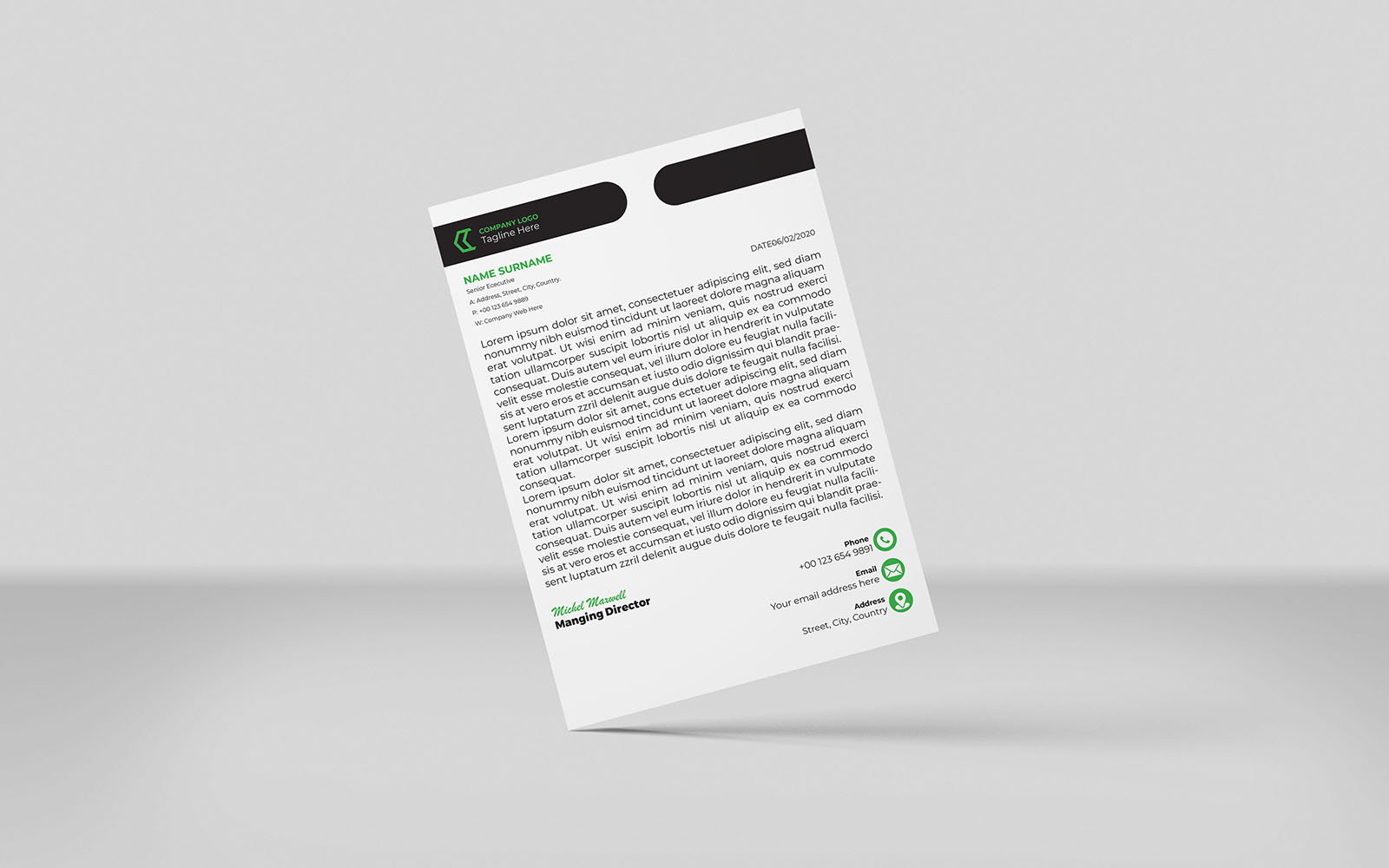 Creative Letterhead Green and Black Color Corporate Template Corporate Identity