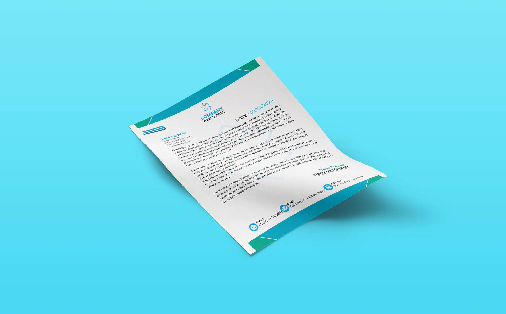 This is a Letterhead Design. This template download contains 300 dpi print-ready CMYK PSD, AI & EPS files.