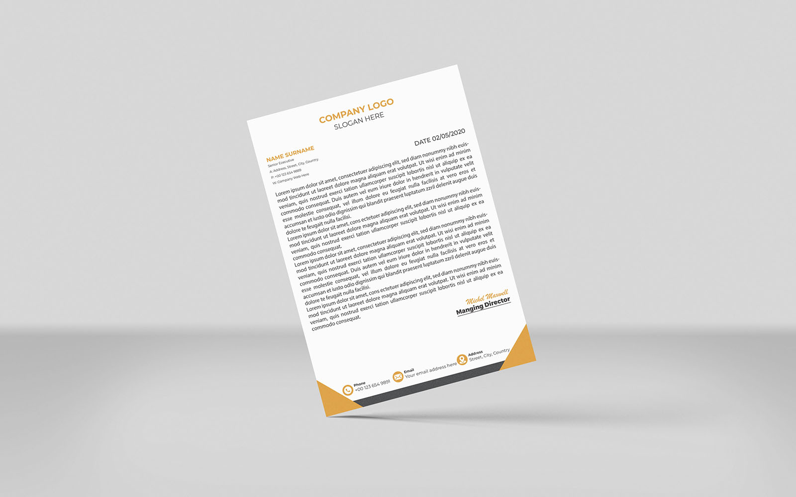 Elevate your professional identity with our eye-catching Letterhead Template. This high-quality design is suitable for all kinds of businesses. Our clean and stylish letterhead design will play an important role in your business communication. This template is fully customizable and easy to use for your business. All objects are resizable with no quality loss.