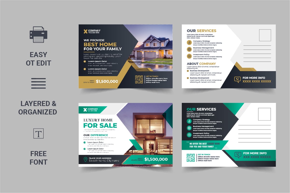 Creative Real Estate Postcard Template, Real Estate or home sale eddm Postcard Design Template Corporate Identity
