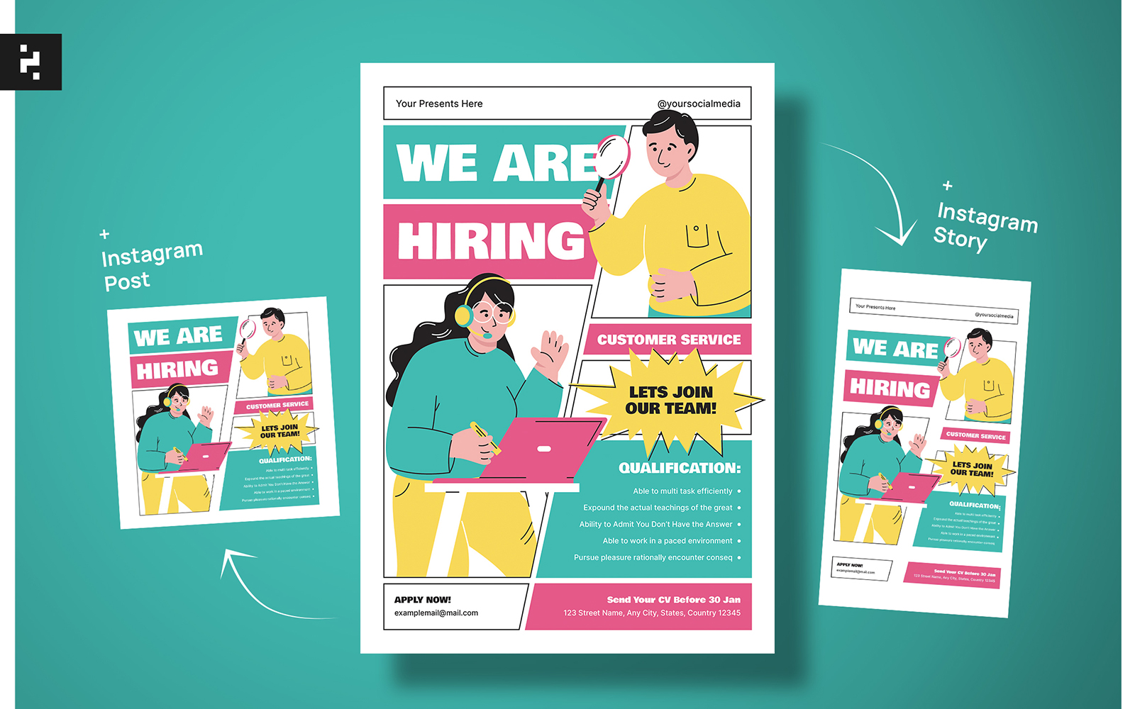 Customer Service Job Hiring Flyer Corporate Identity
