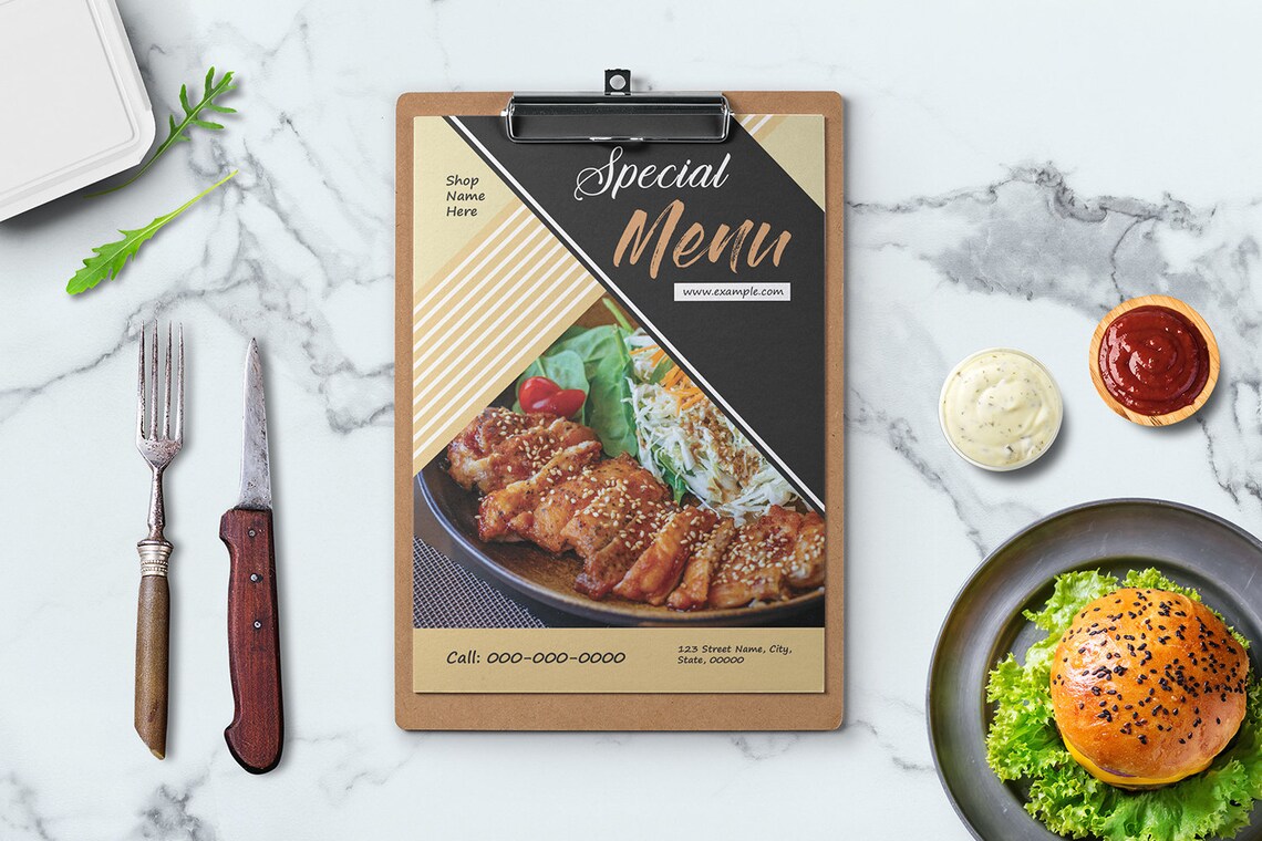 Showcase your dishes in style with this restaurant menu flyer template. Perfect for dine-in, takeout, or promotional use. Fully customizable and easy to edit for any cuisine.