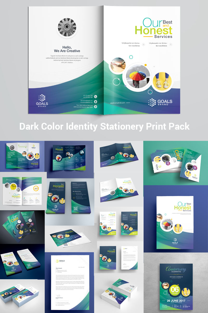 Dark Color Identity Stationery Print Pack Template
