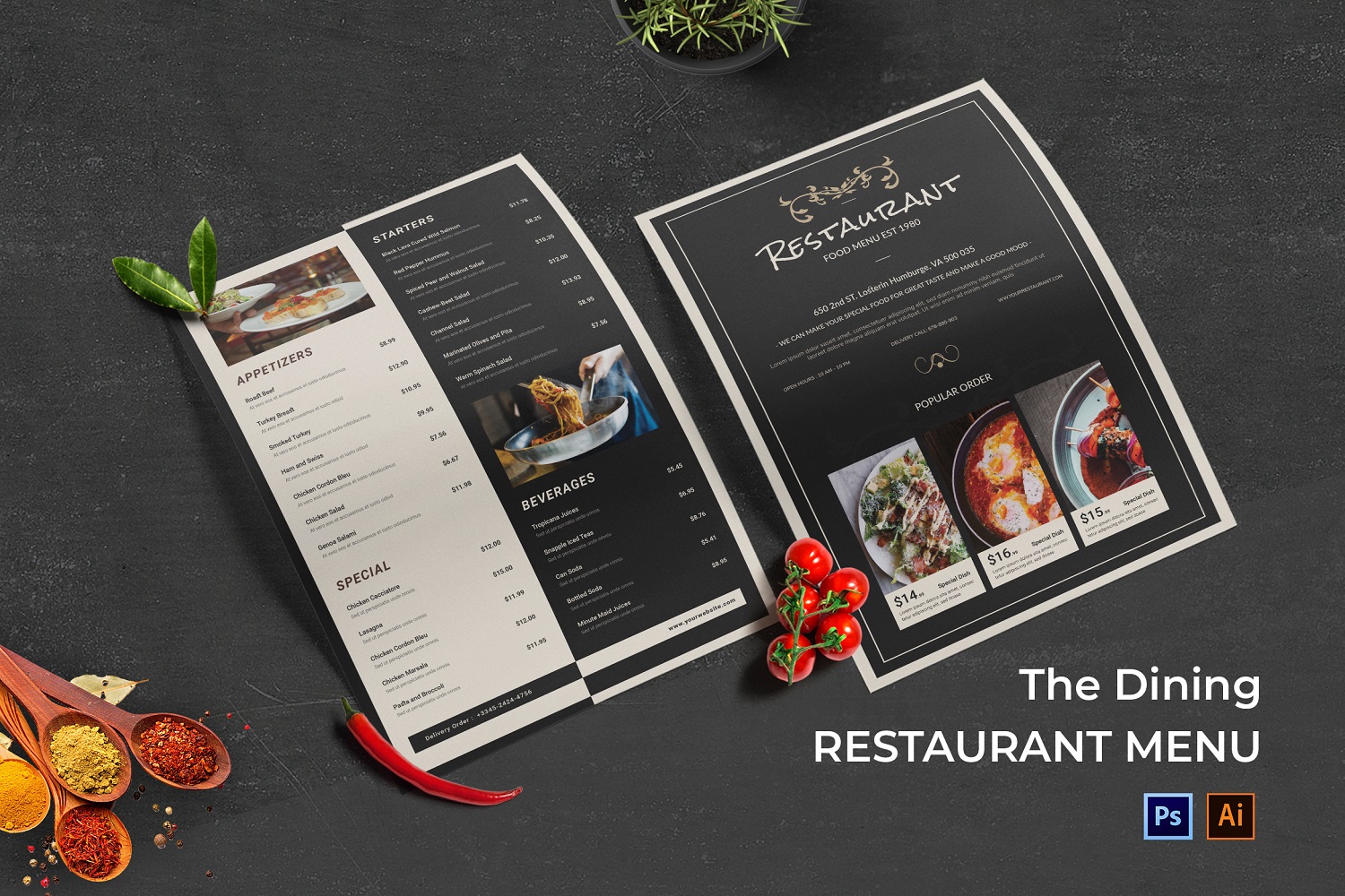 This Food Menu Set template has fully editable and customizable PSD and AI files. This Food Menu template also has creative style, and it's suitable for your any purpose such as: businesses, corporate, agency and can be also used for any other publishing like marketing promotions and company profile.