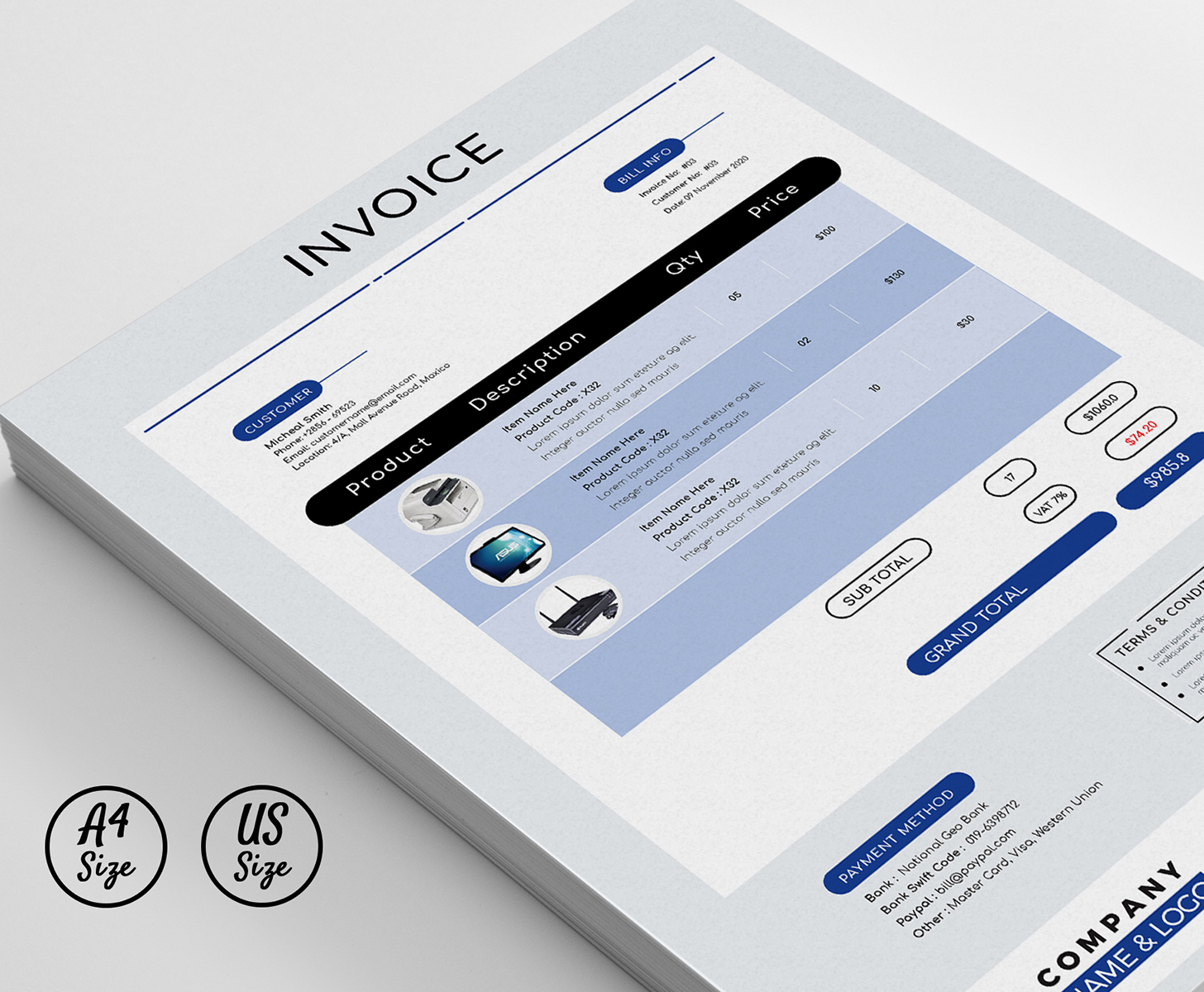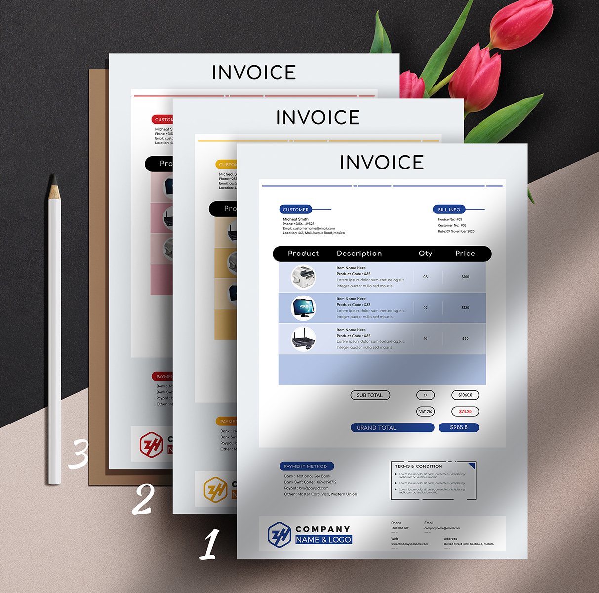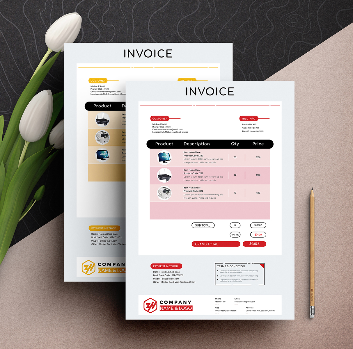 This Modern Invoice Template has been made especially for those who want to spread their business identity to everyone.